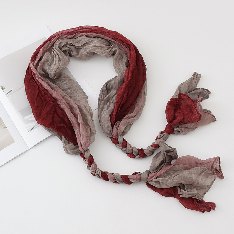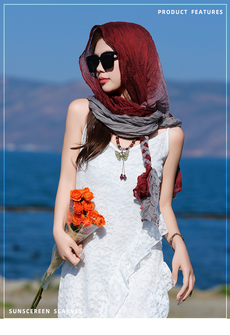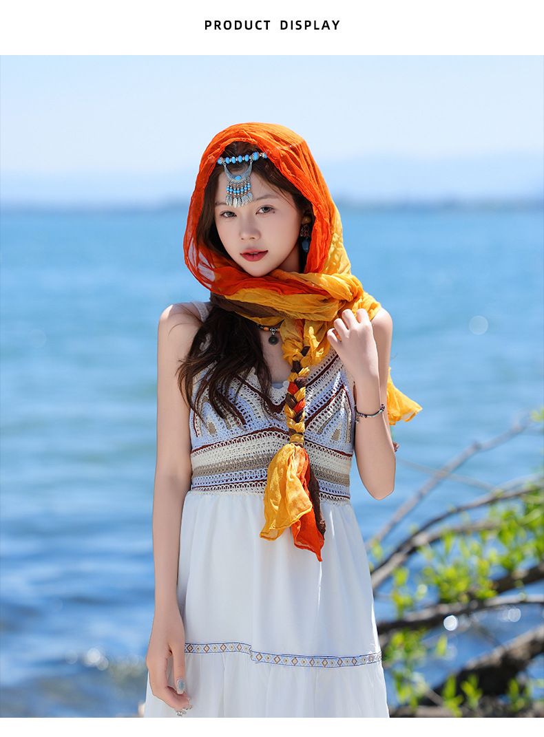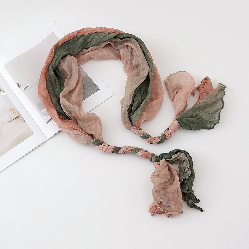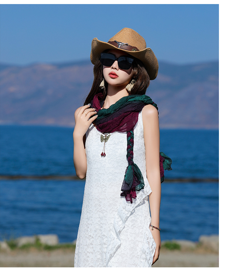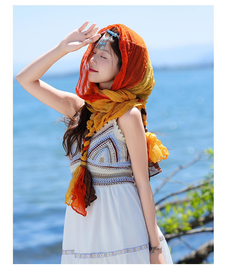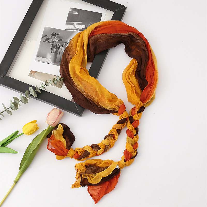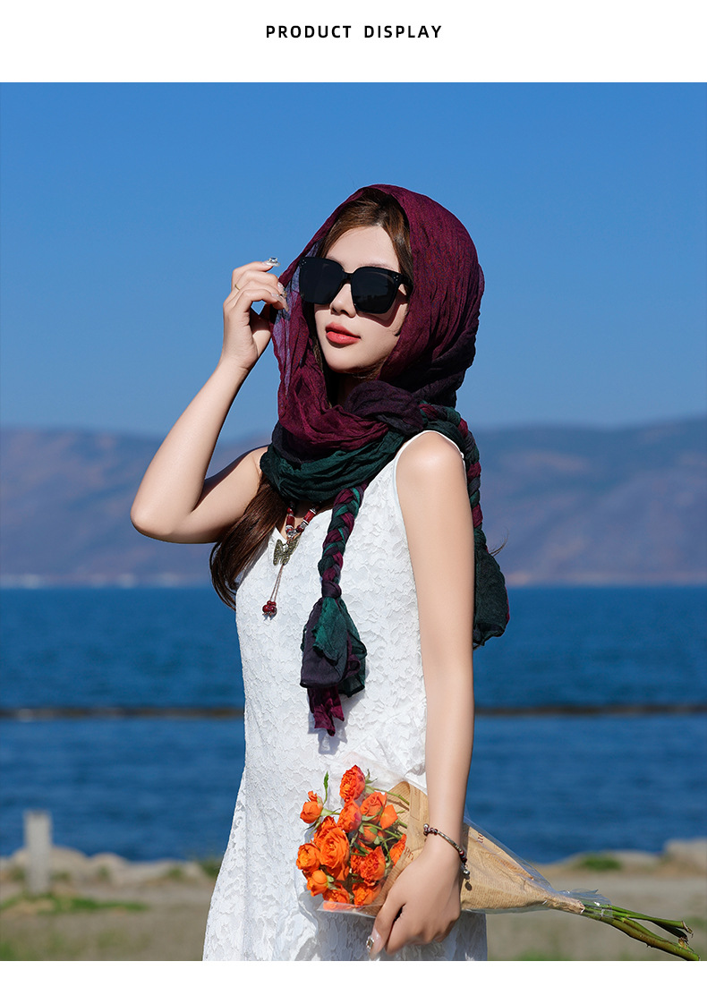 봄과 가을 다용도 바오터우 스카프, 야외용 얇은 면 및 린넨 땋은 스카프, 여행 사진, 과색 풀오버 숄