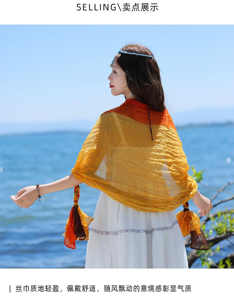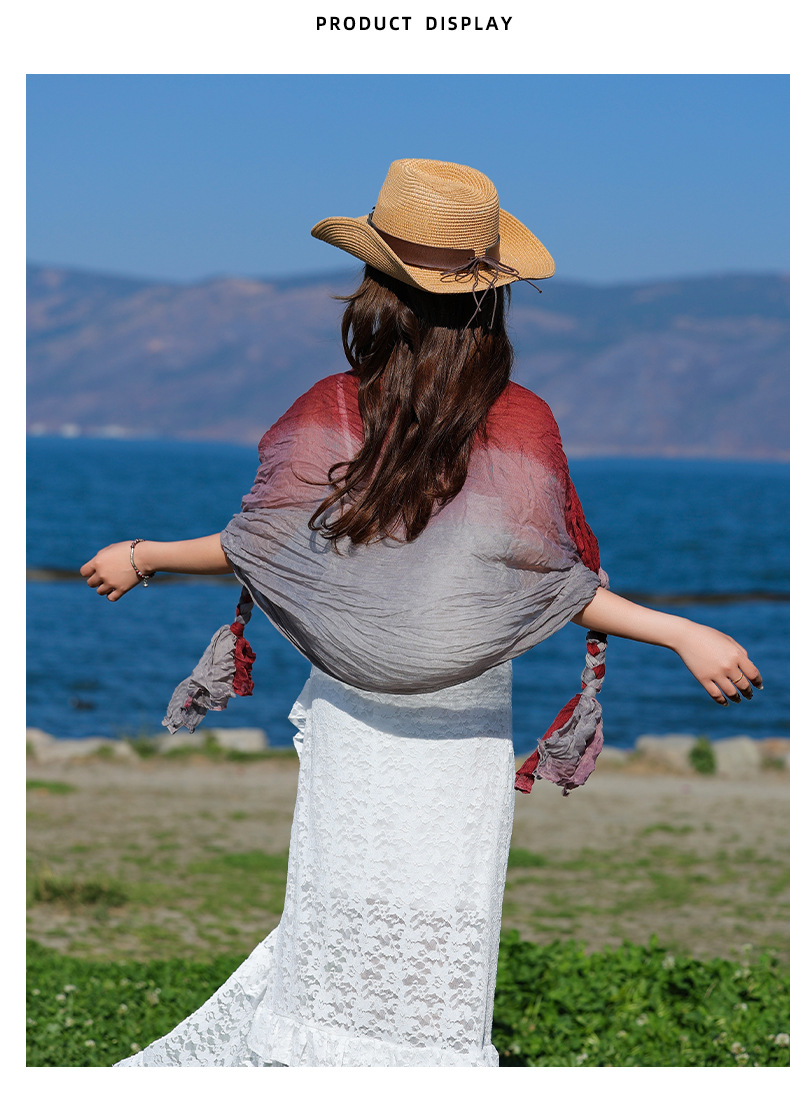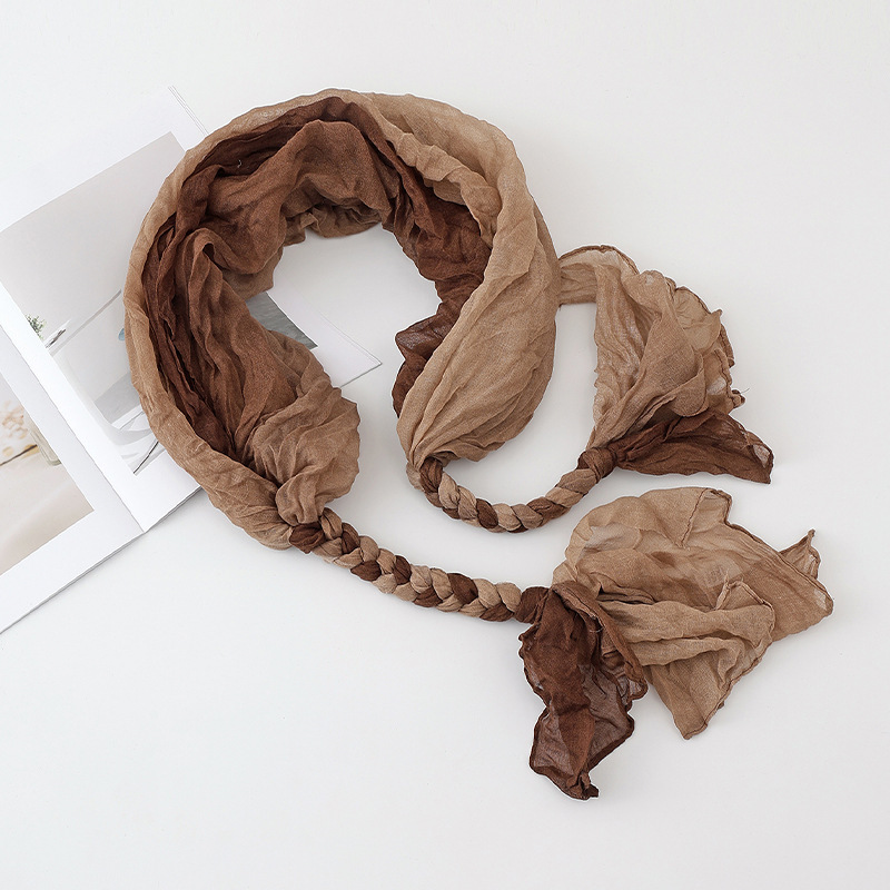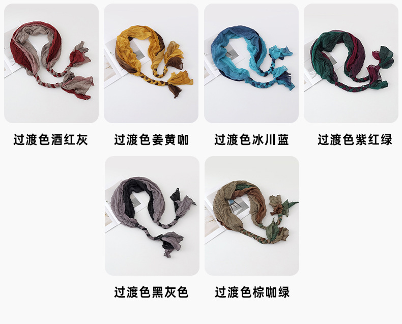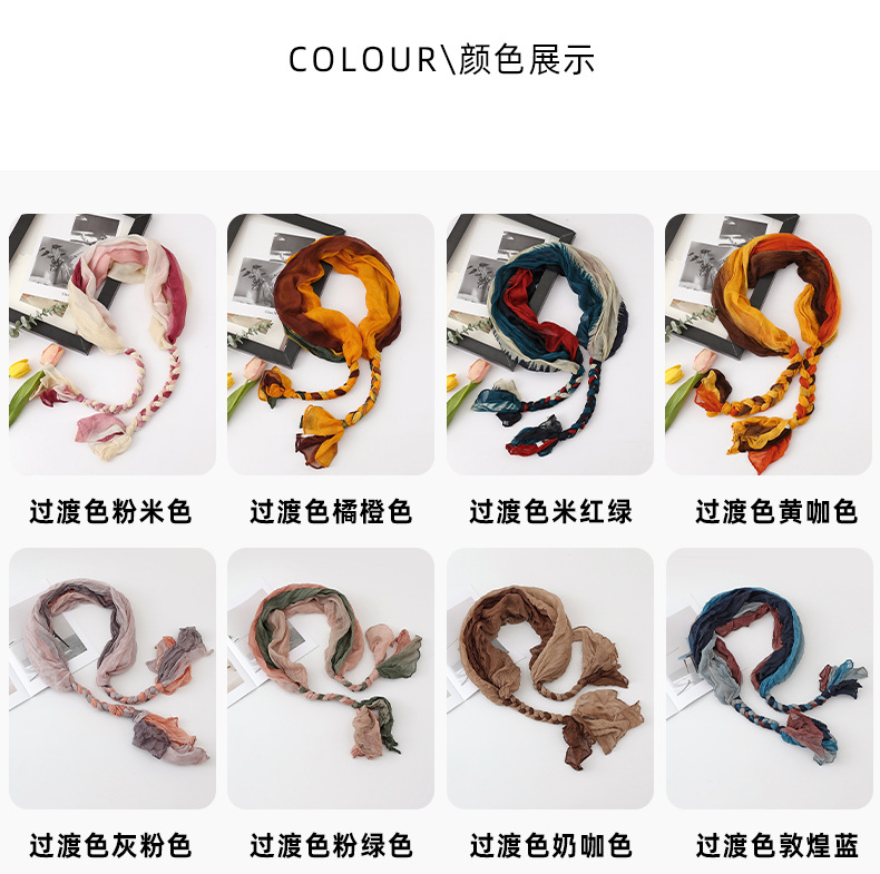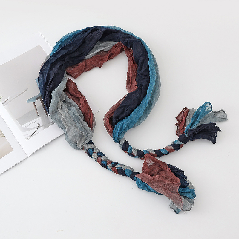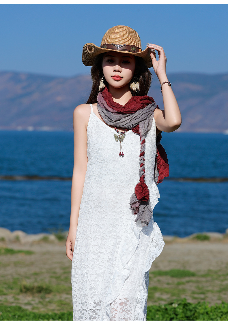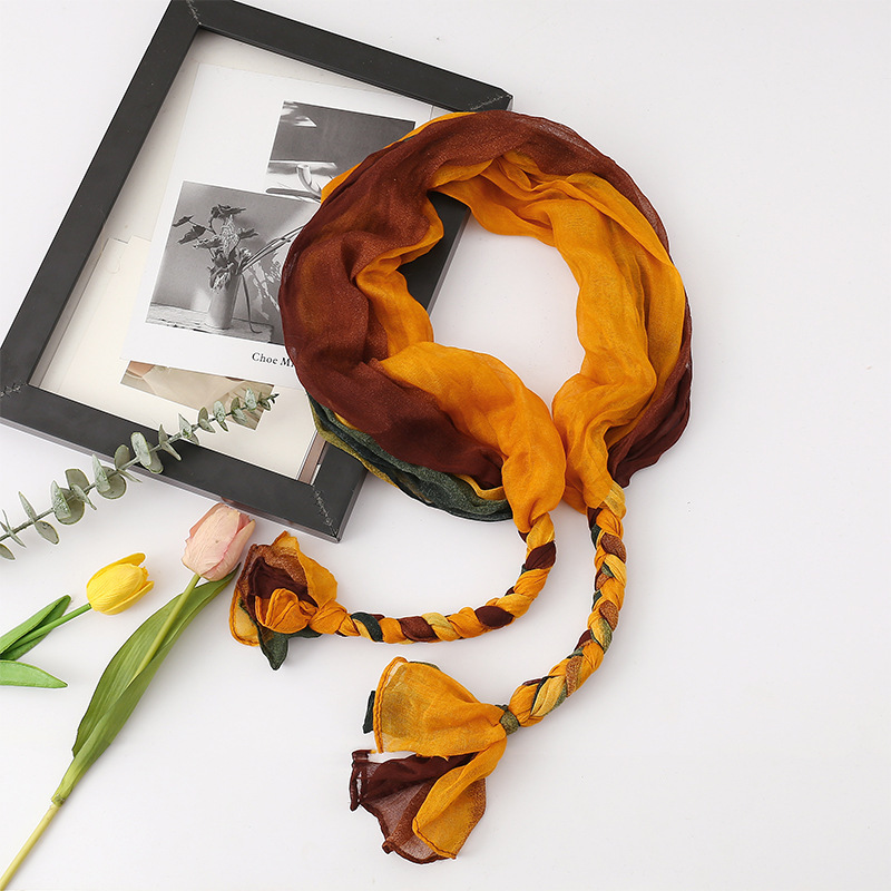 봄과 가을 다용도 바오터우 스카프, 야외용 얇은 면 및 린넨 땋은 스카프, 여행 사진, 과색 풀오버 숄
