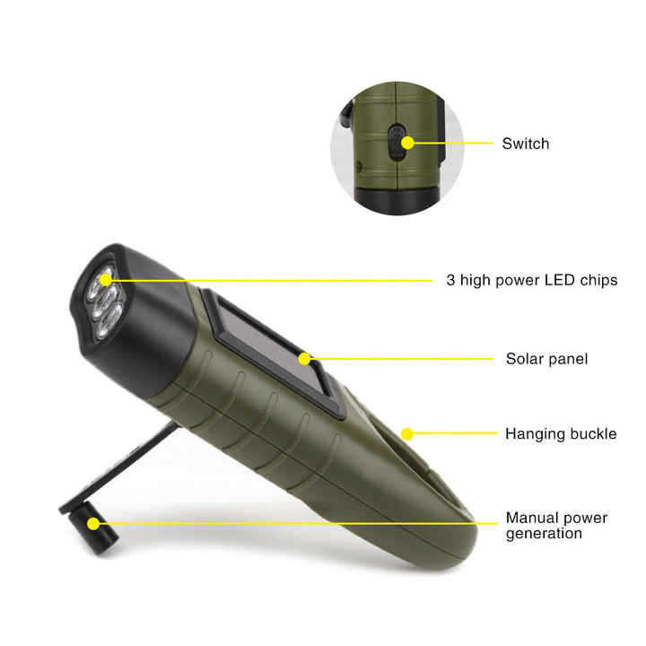 태양 손전등 휴대용 다기능 핸드 크랭크 발전 캠핑 램프 가정용 비상 미니 조명 핸드 헬드 손전등