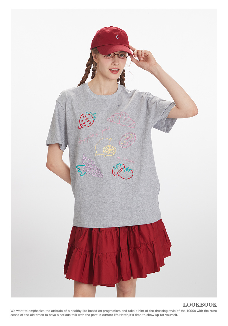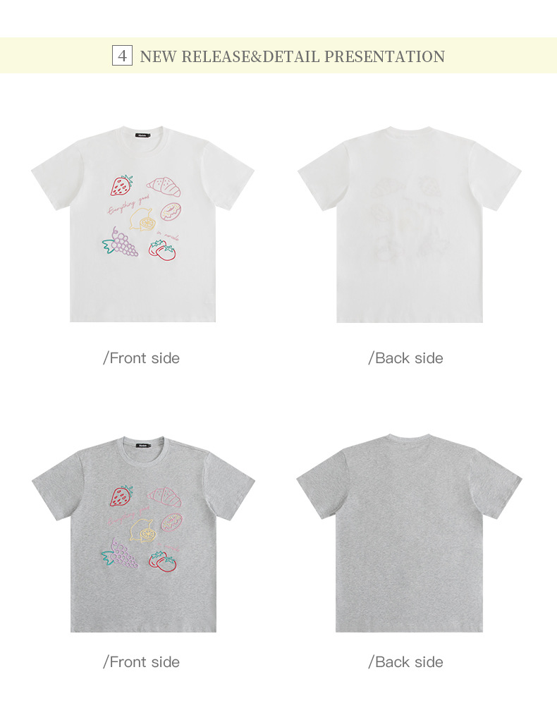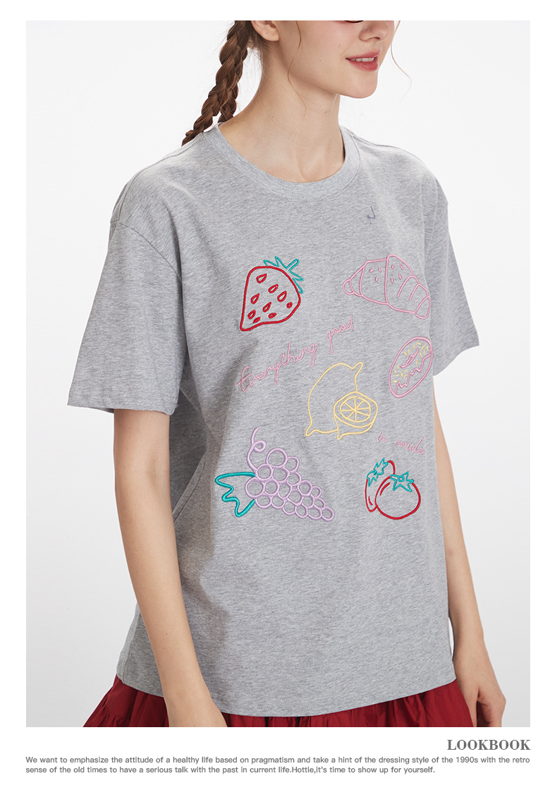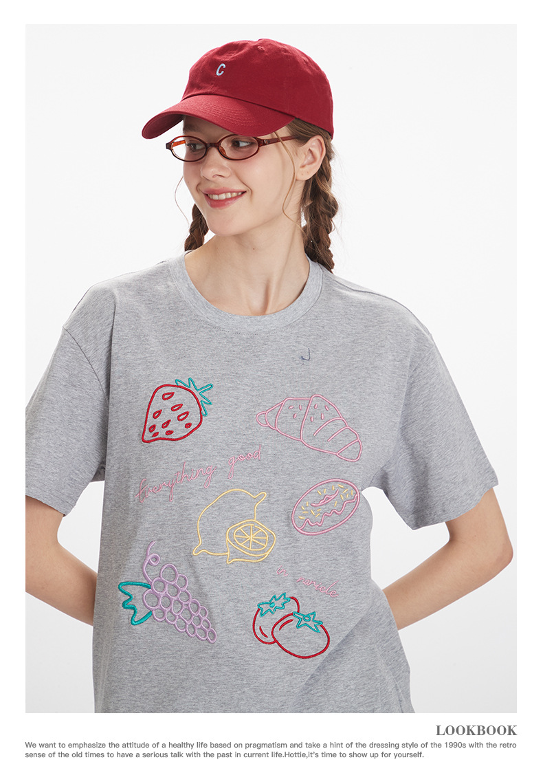HeyHenry 남자 여름 3 차원 자수 디자인 반팔 티셔츠 여성용 라운드 넥 루즈 올 매치 커플 탑스토어 가기