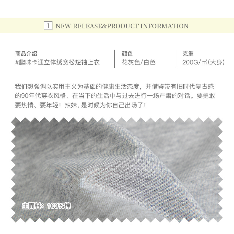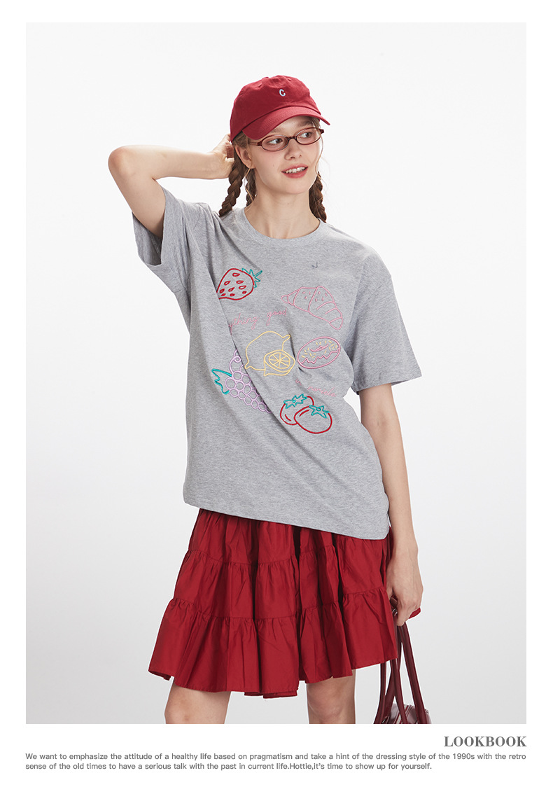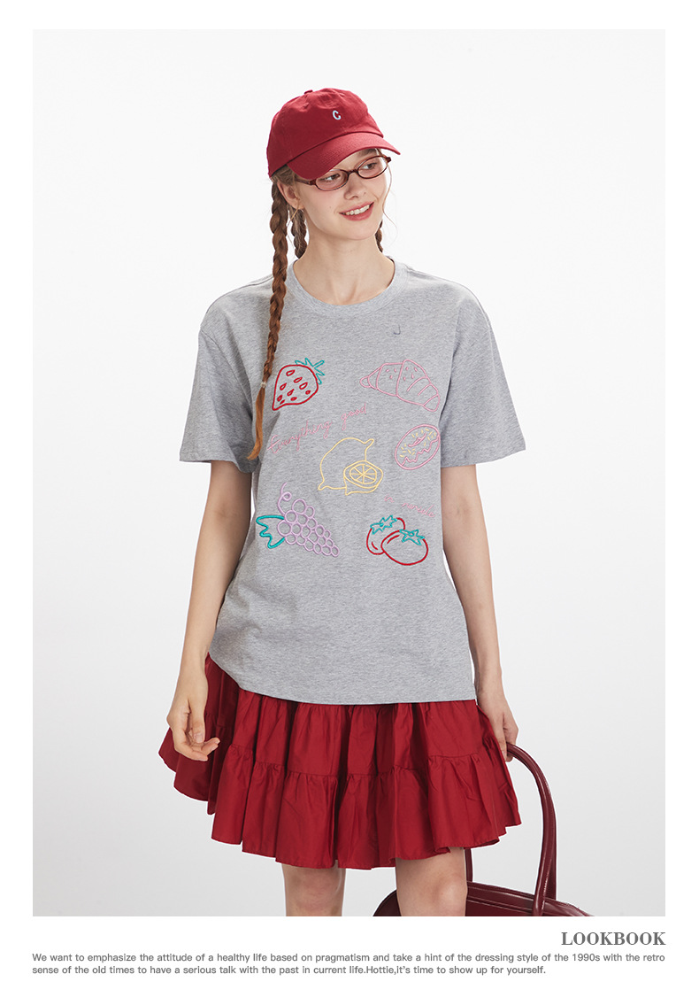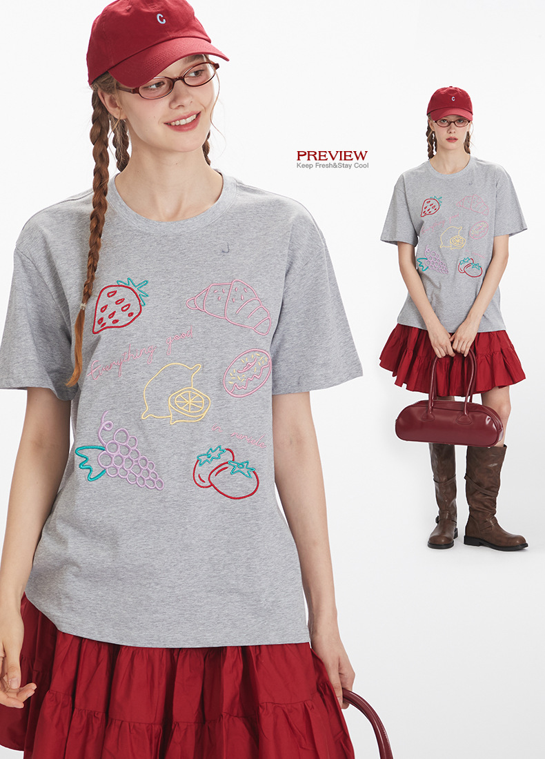 HeyHenry 남자 여름 3 차원 자수 디자인 반팔 티셔츠 여성용 라운드 넥 루즈 올 매치 커플 탑스토어 가기