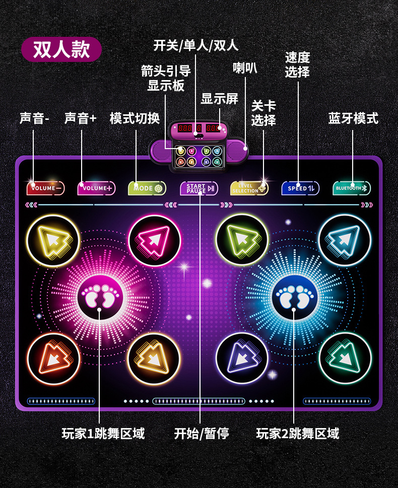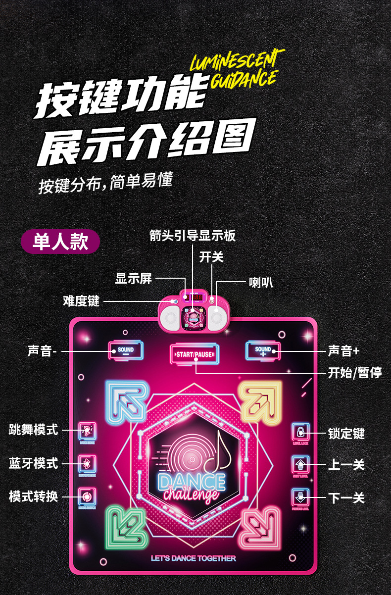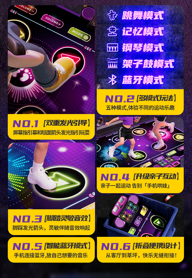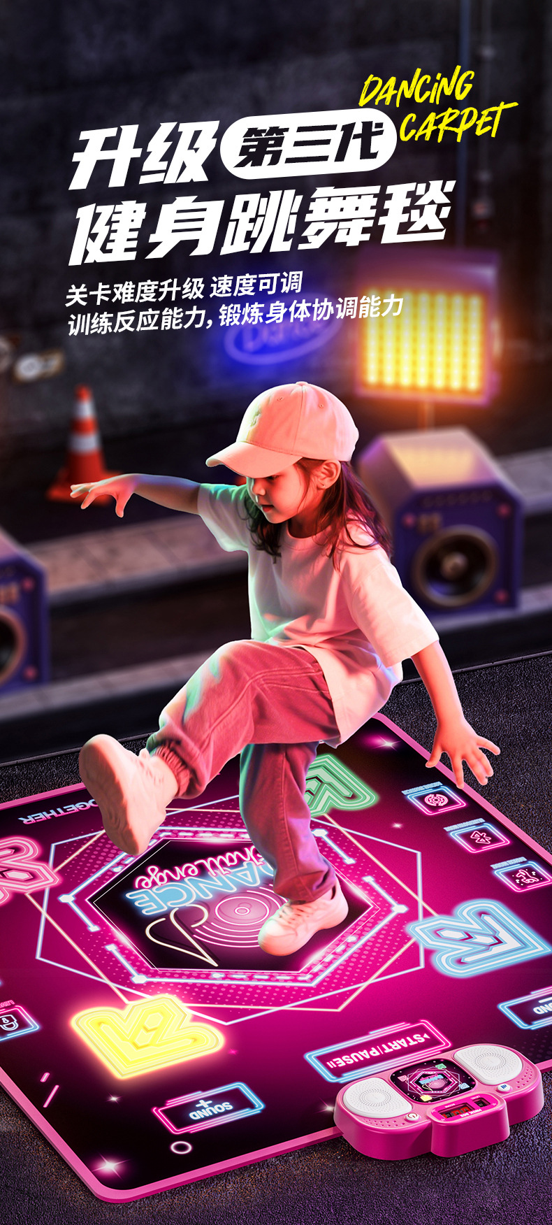 음악 댄스 매트 어린이 스포츠 피트니스 동적 레벨 깨기 무선 게임 매트 교육 점프 장난감 6-12 세스토어 가기