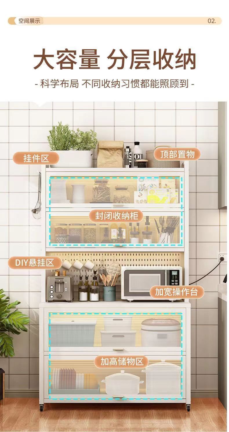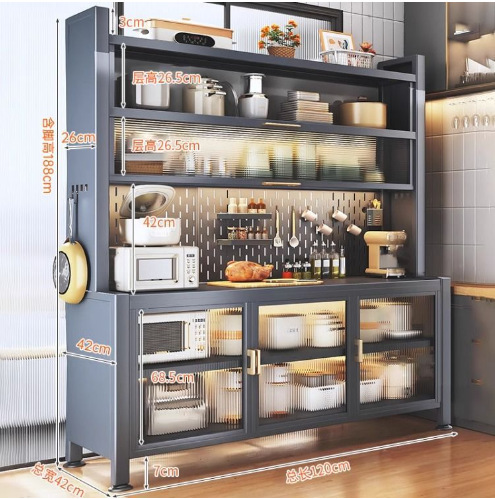 厨房置物架落地多层储物柜多用途微波炉烤箱收纳整理架防尘餐边柜