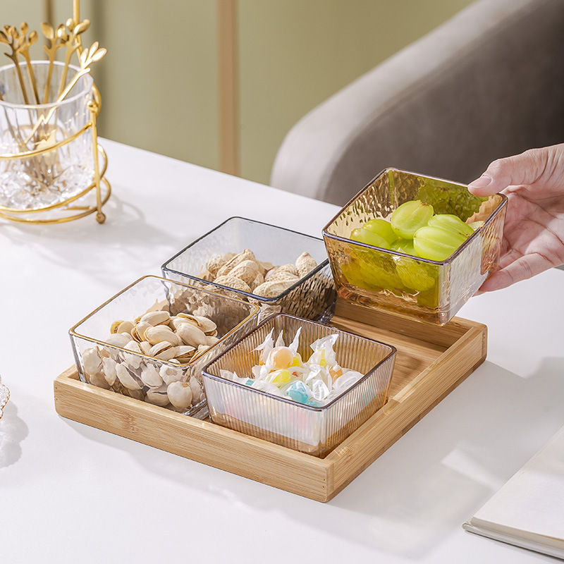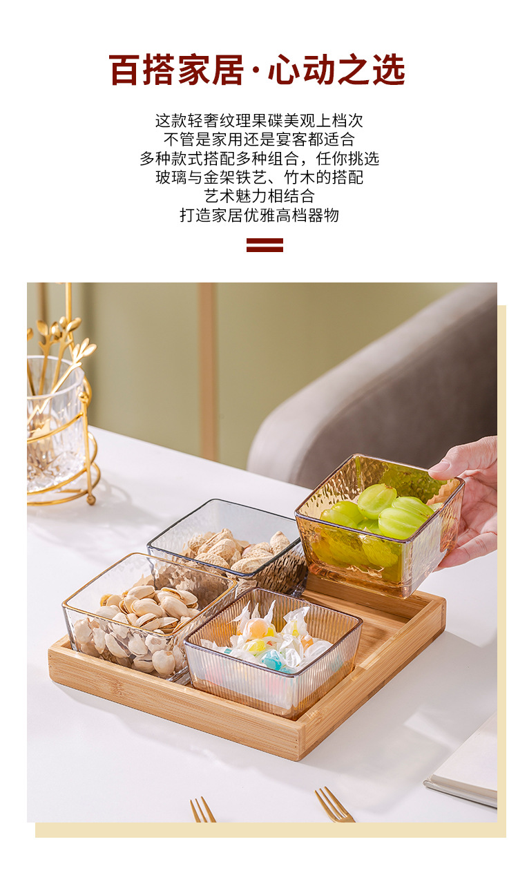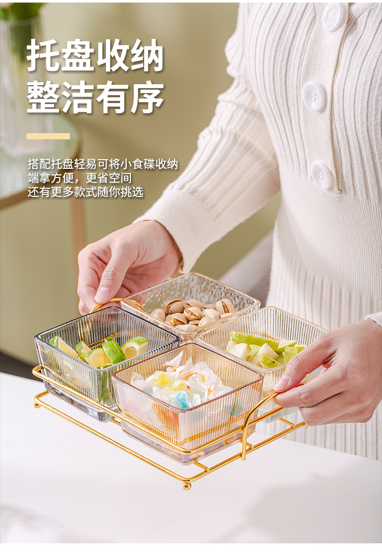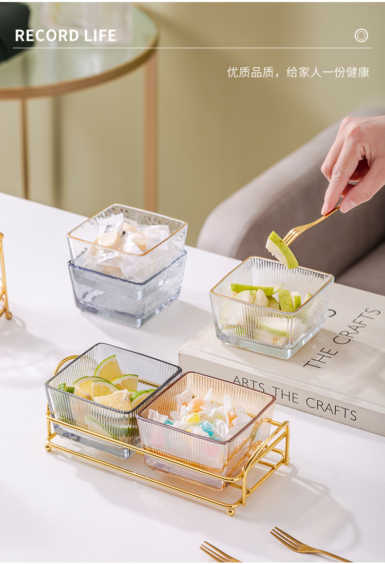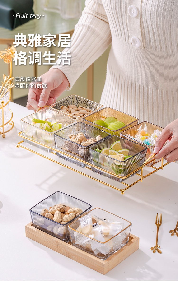 유리 과일 접시 작은 그릇 뚜껑이 달린 가벼운 고급 가정용 과일 접시 바 KTV 크리 에이 티브 칸막이 스낵 플래터 스낵 접시