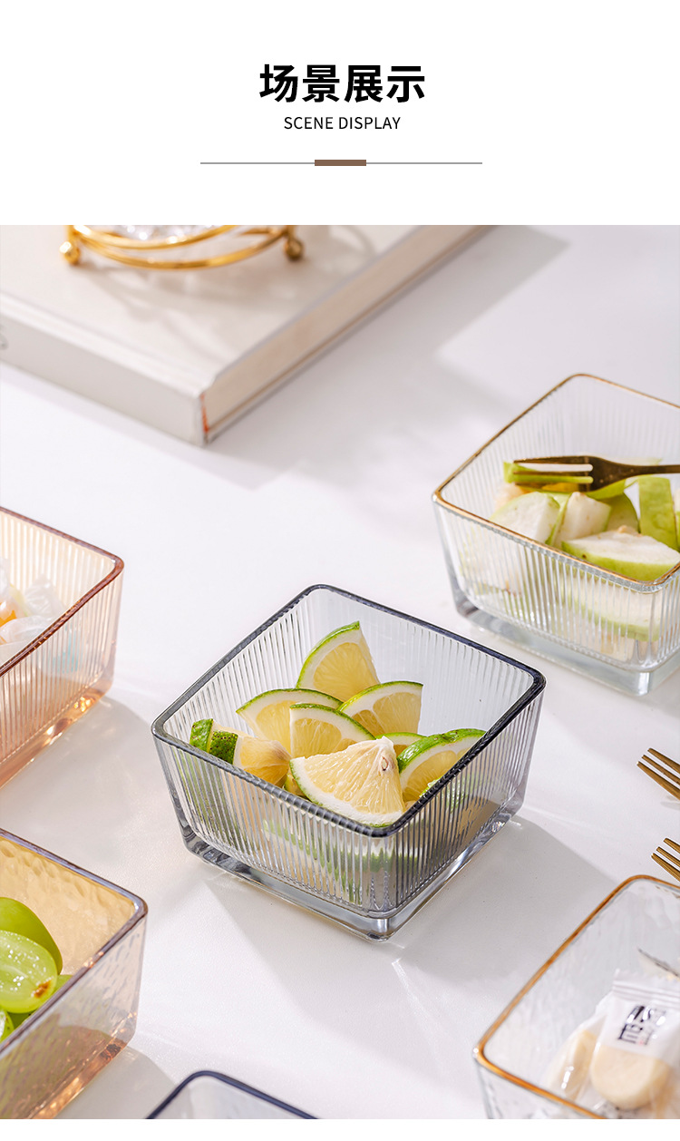 • 투명한 수직 유리 접시