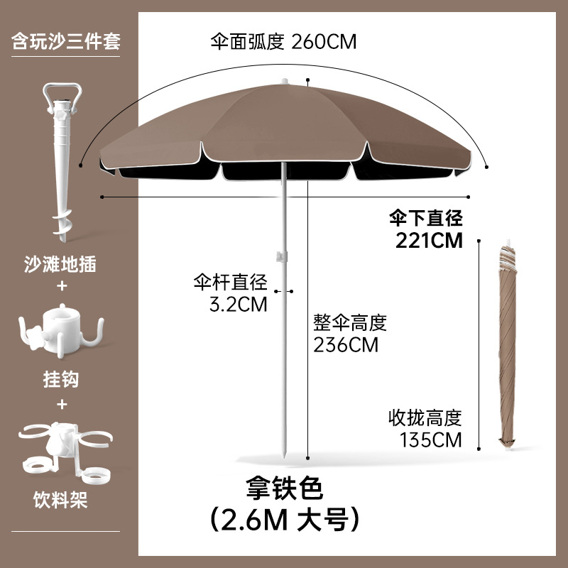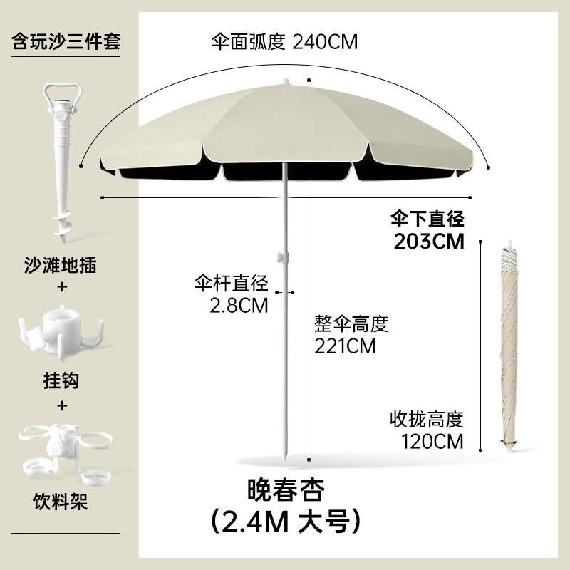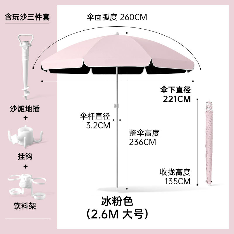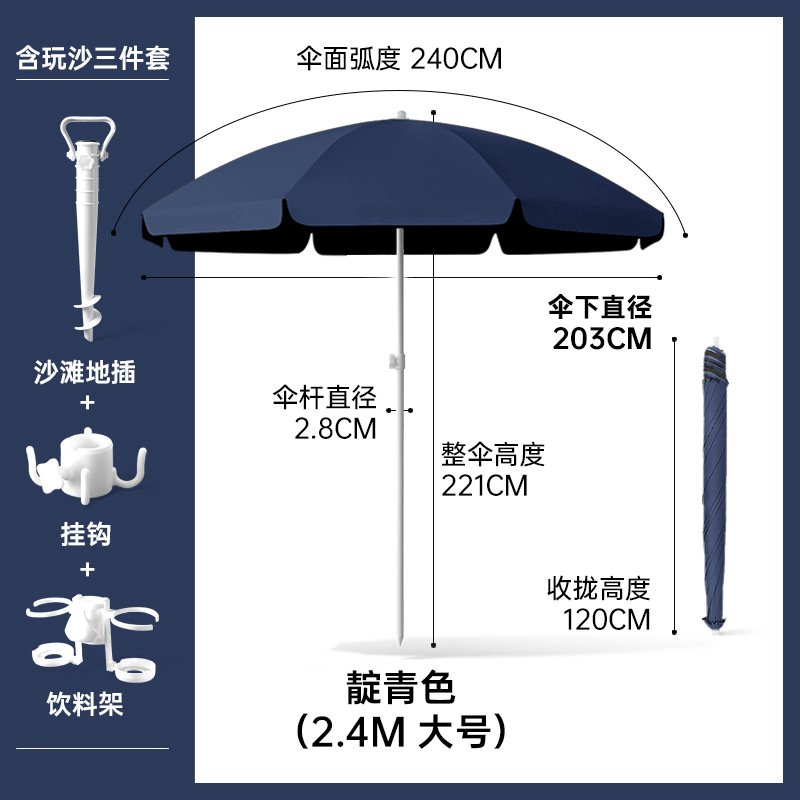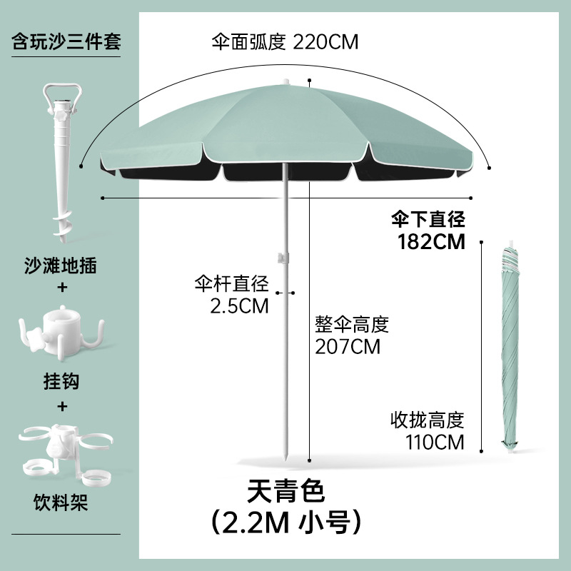 비치우산 [플러그인 + 음료수 홀더 + 후크] 태양우산 야외용 파라솔 대형 우산 자외선 차단 및 자외선 차단