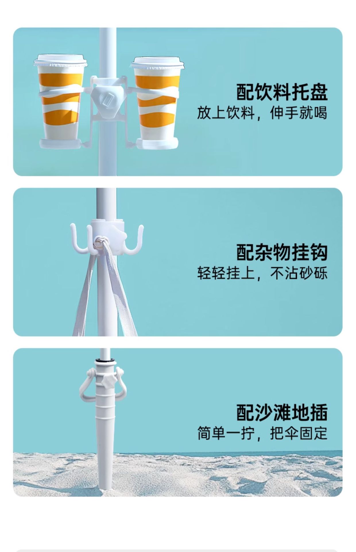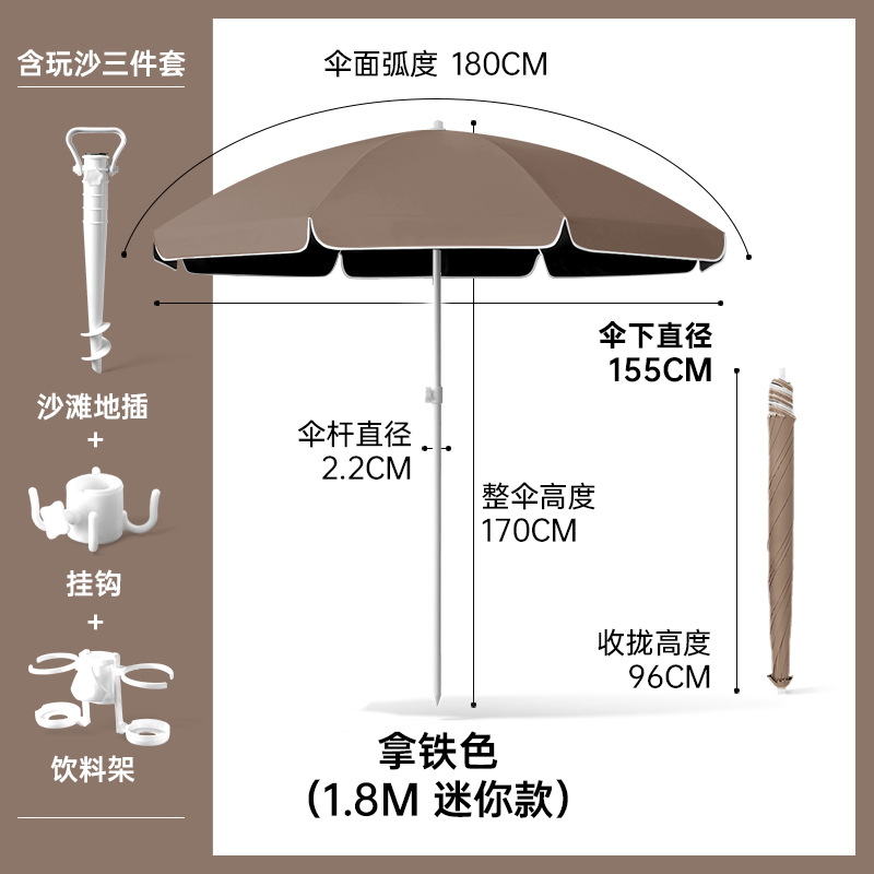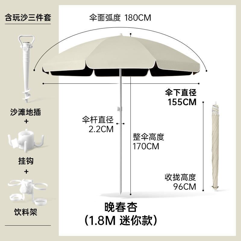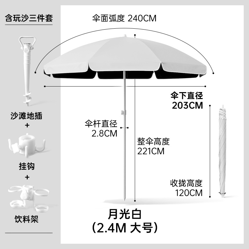 비치우산 [플러그인 + 음료수 홀더 + 후크] 태양우산 야외용 파라솔 대형 우산 자외선 차단 및 자외선 차단