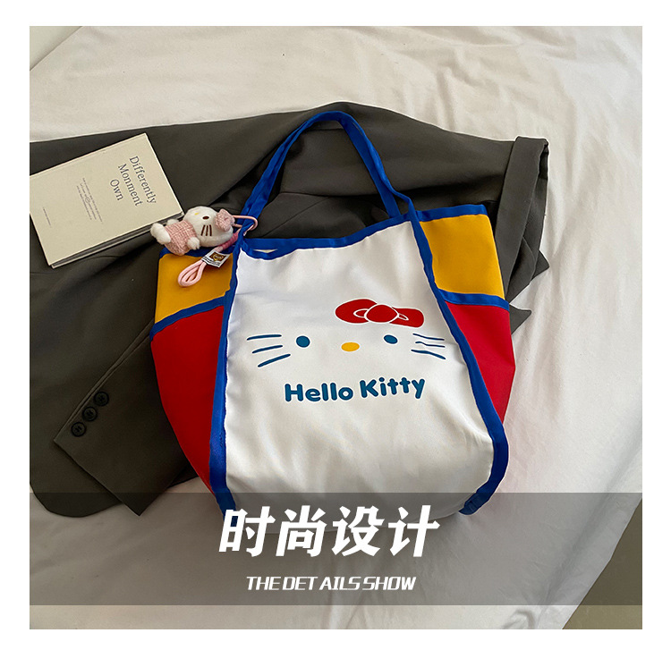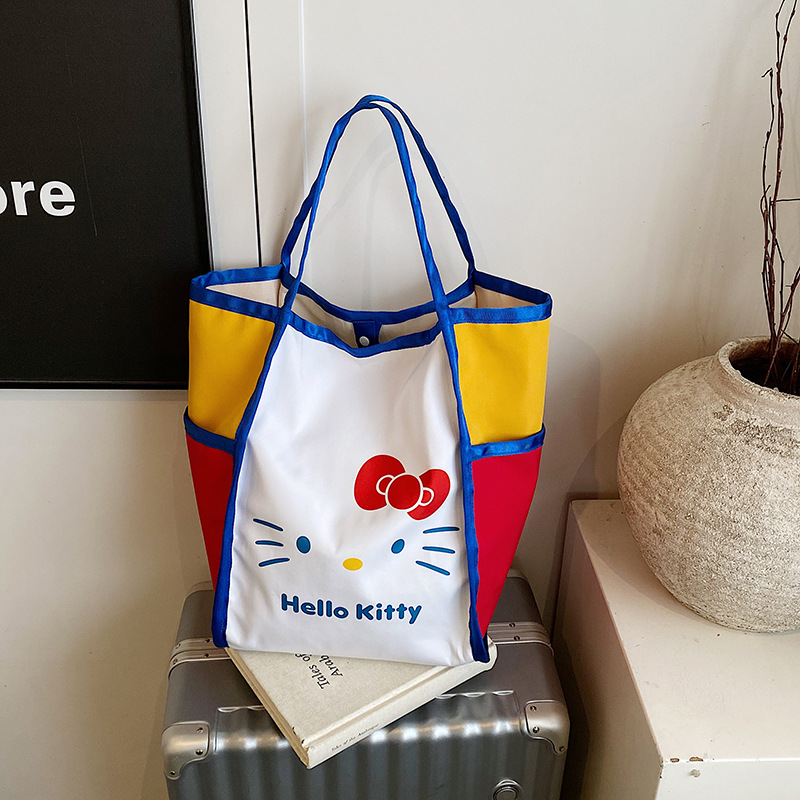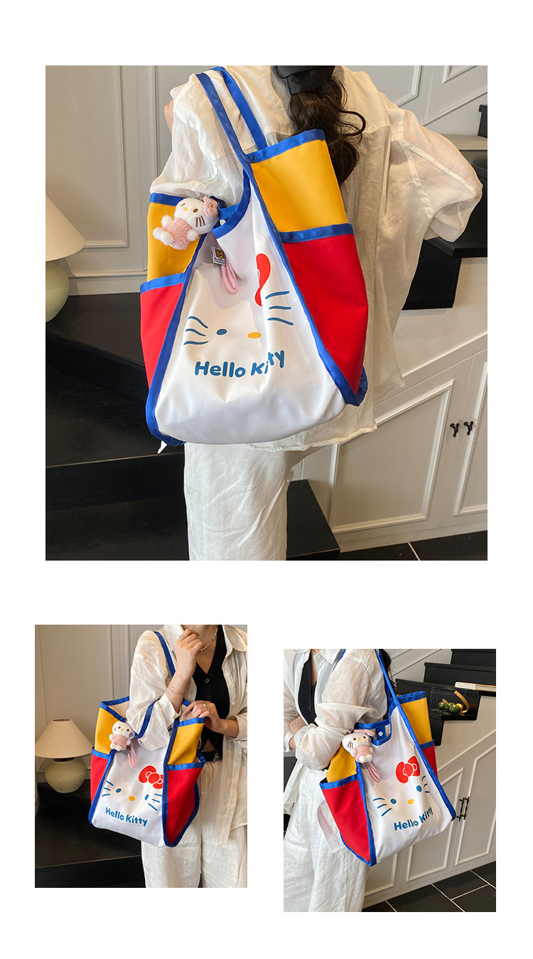 일본 새로운 고양이 메쉬 핸드백 만화 귀여운 색상 대비 어깨 대용량 접이식 쇼핑 가방 비치 백