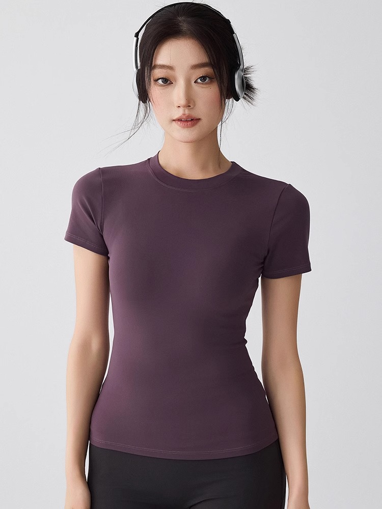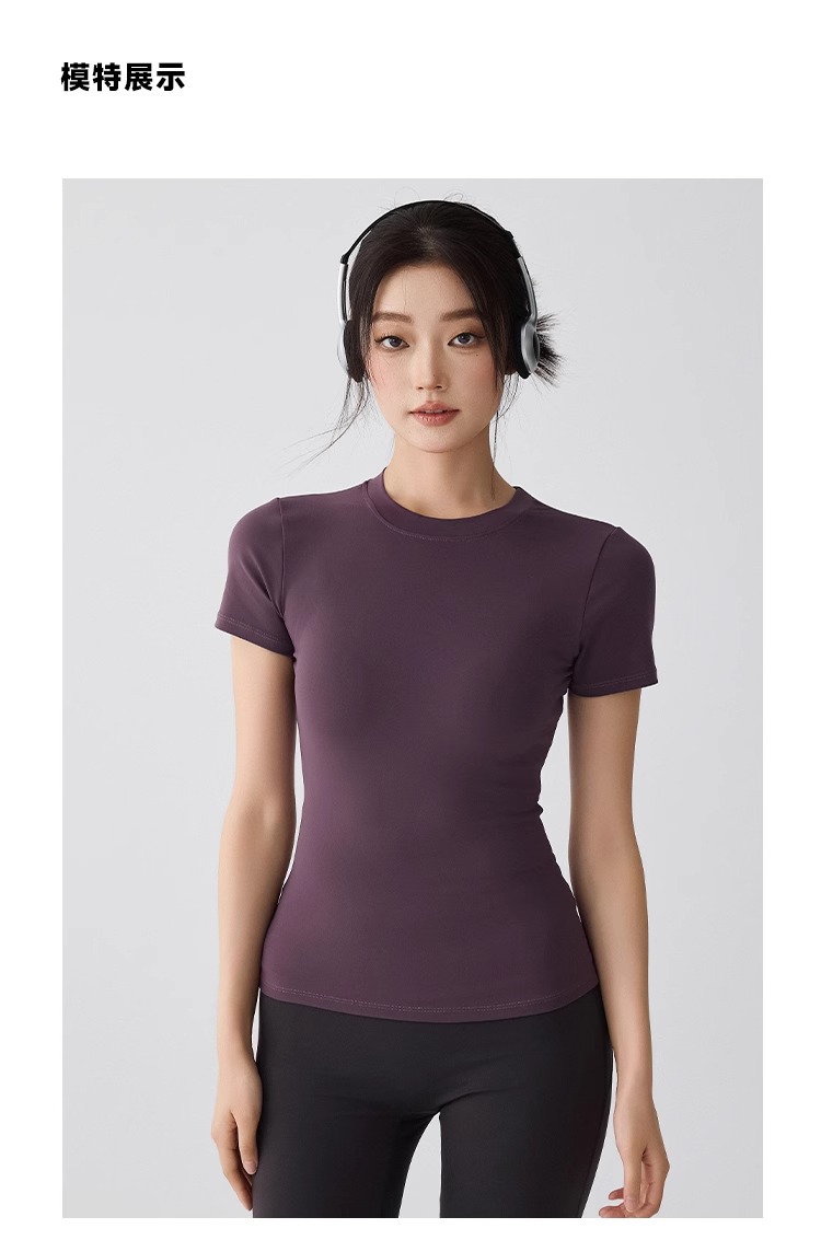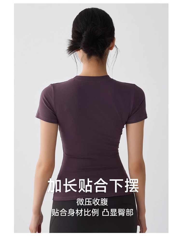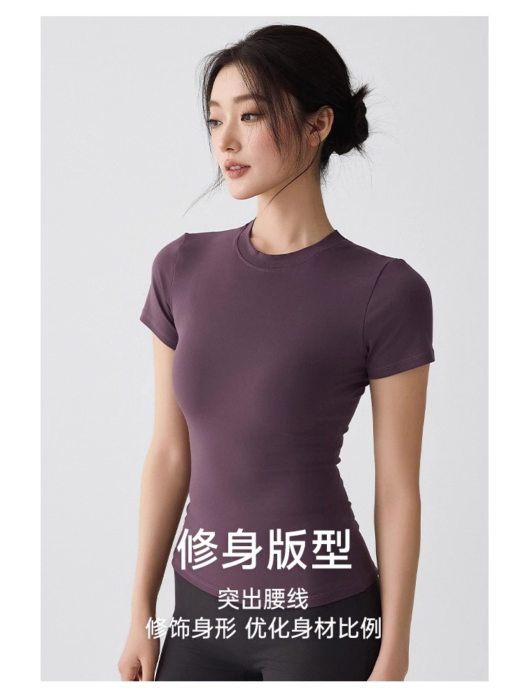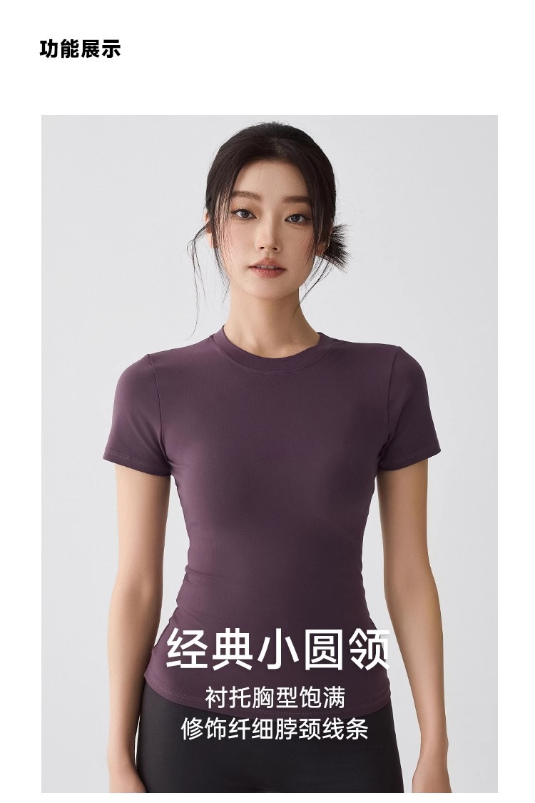DC 신형 누드 요가복 반팔 속건성 다용도 슬림 스포츠 티셔츠 여성용 라운드 넥 슬리밍 피트니스 탑