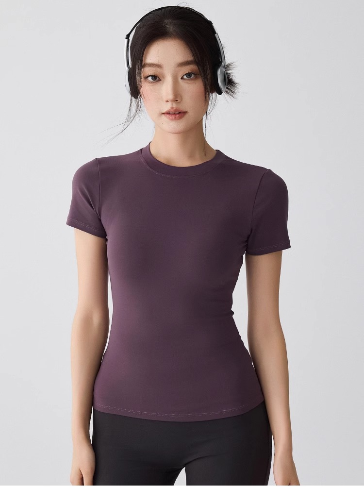 DC 신형 누드 요가복 반팔 속건성 다용도 슬림 스포츠 티셔츠 여성용 라운드 넥 슬리밍 피트니스 탑스토어 가기