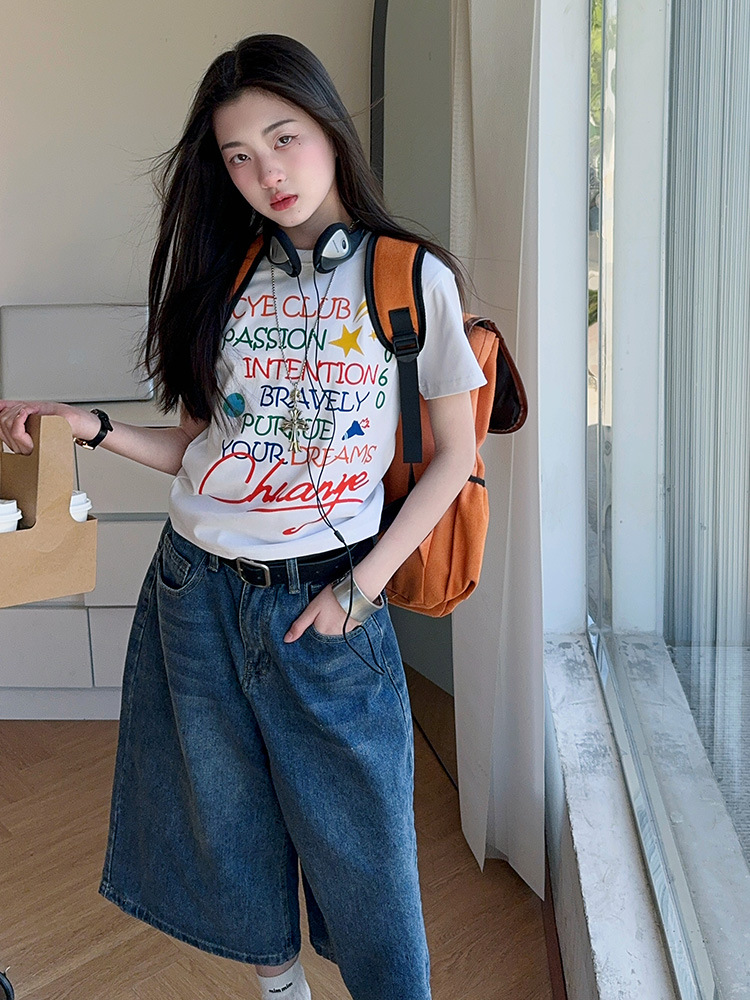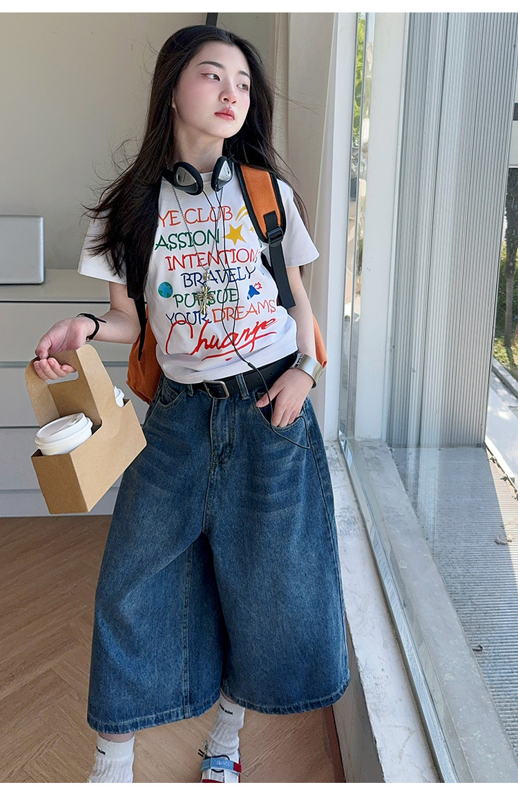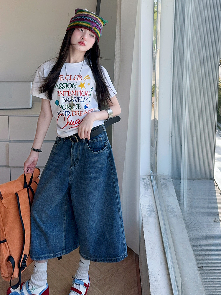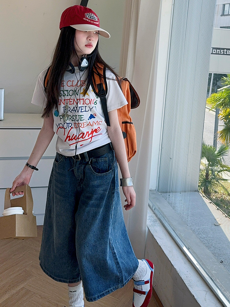 소녀 여름 2025 새로운 cuhk 어린이 한국 반팔 티셔츠 데님 바지 여름 유행 세트 조수스토어 가기