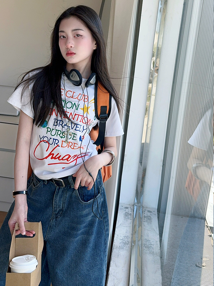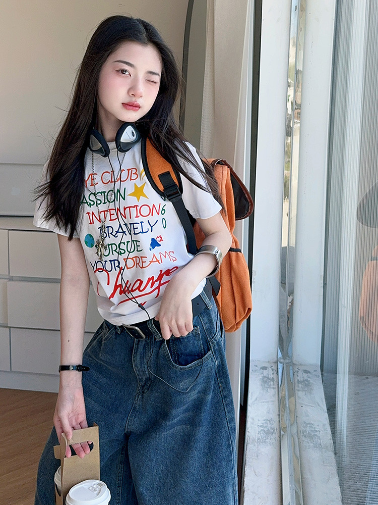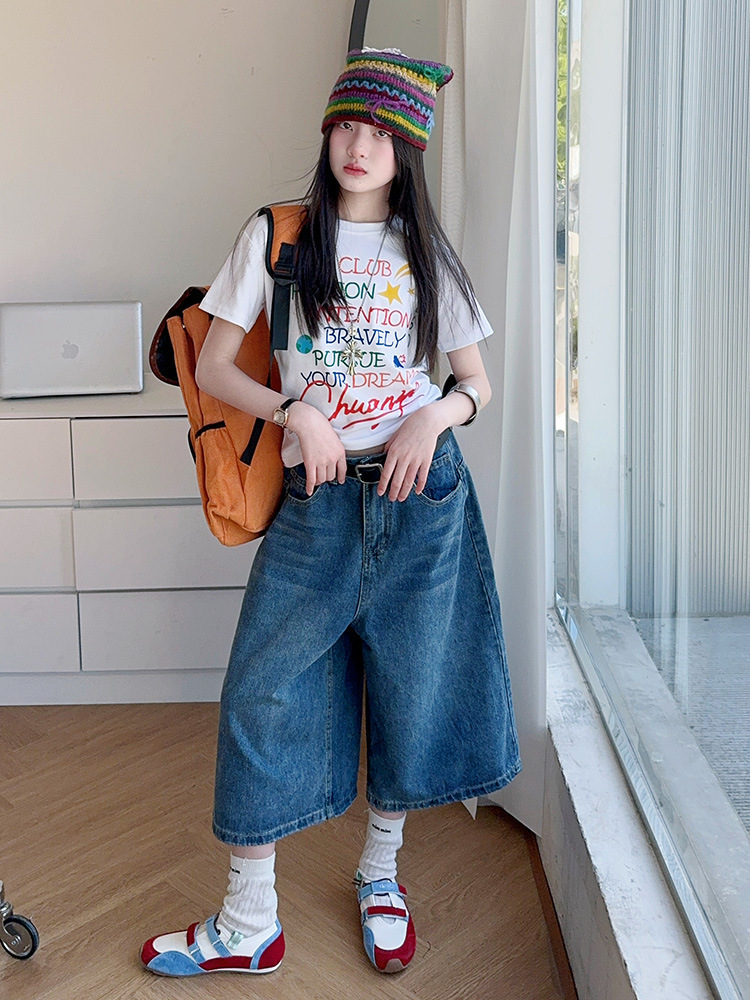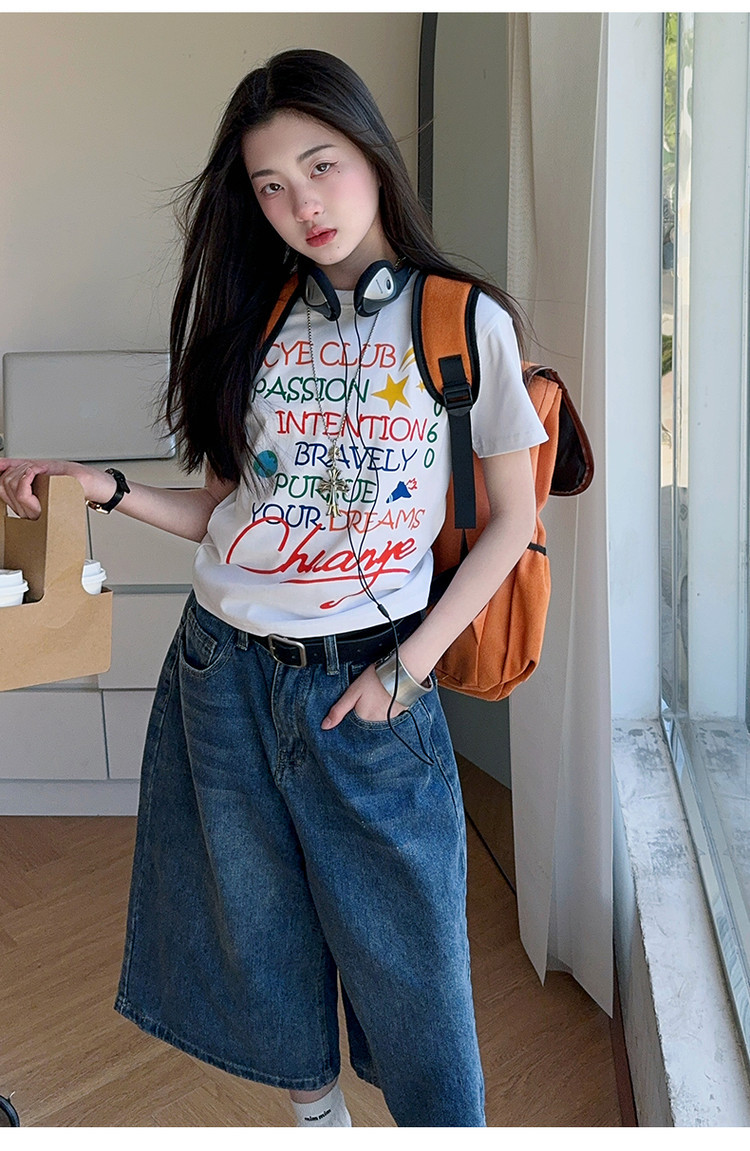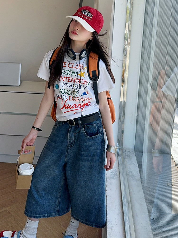 소녀 여름 2025 새로운 cuhk 어린이 한국 반팔 티셔츠 데님 바지 여름 유행 세트 조수스토어 가기