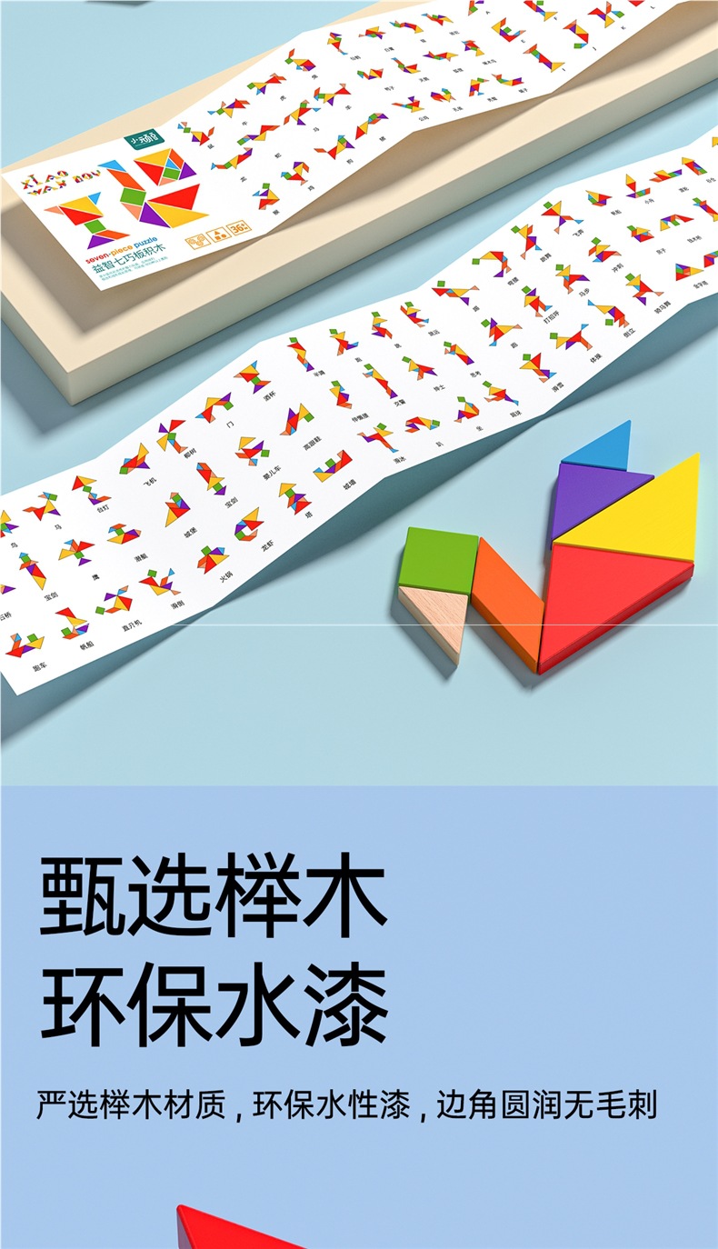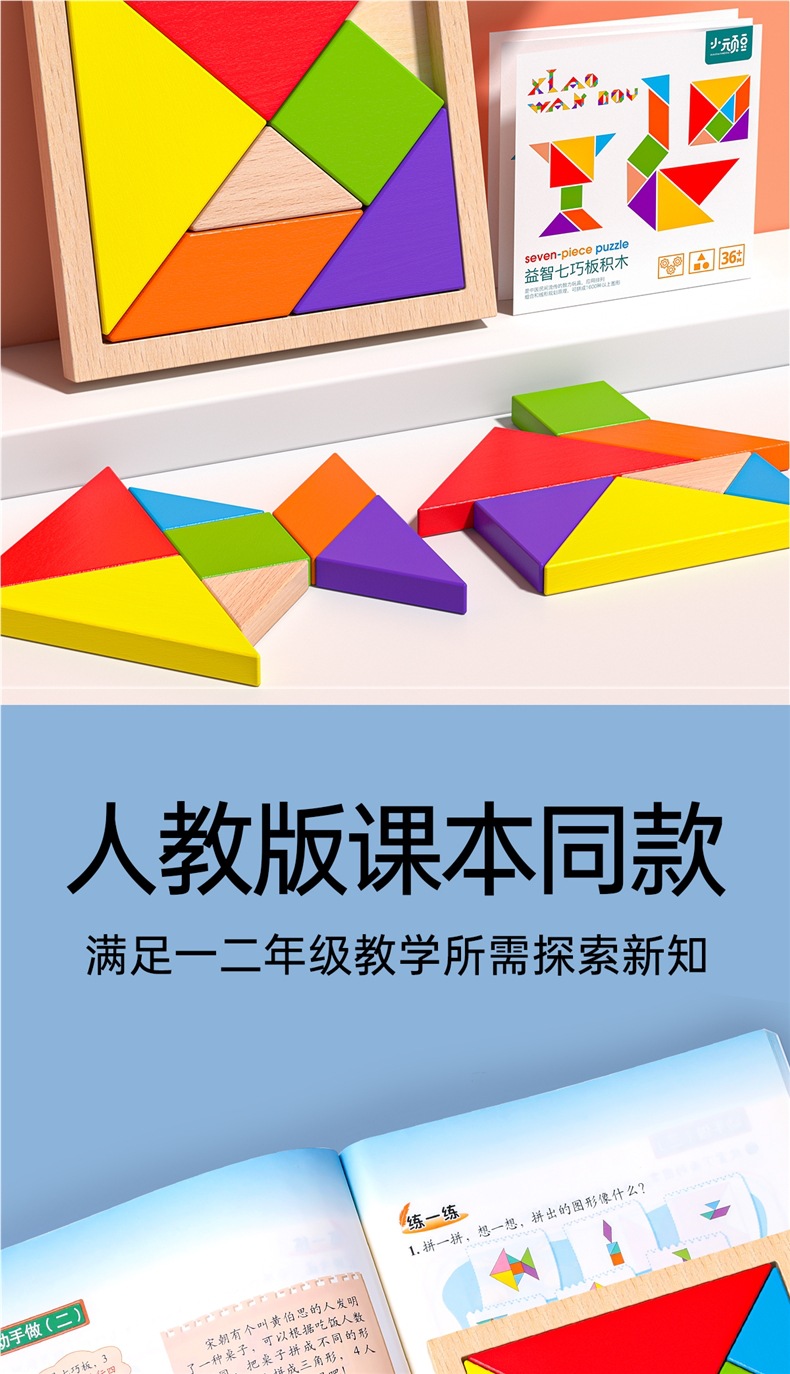 • !【16x16cm】榉木七巧板小学课本同款[]
