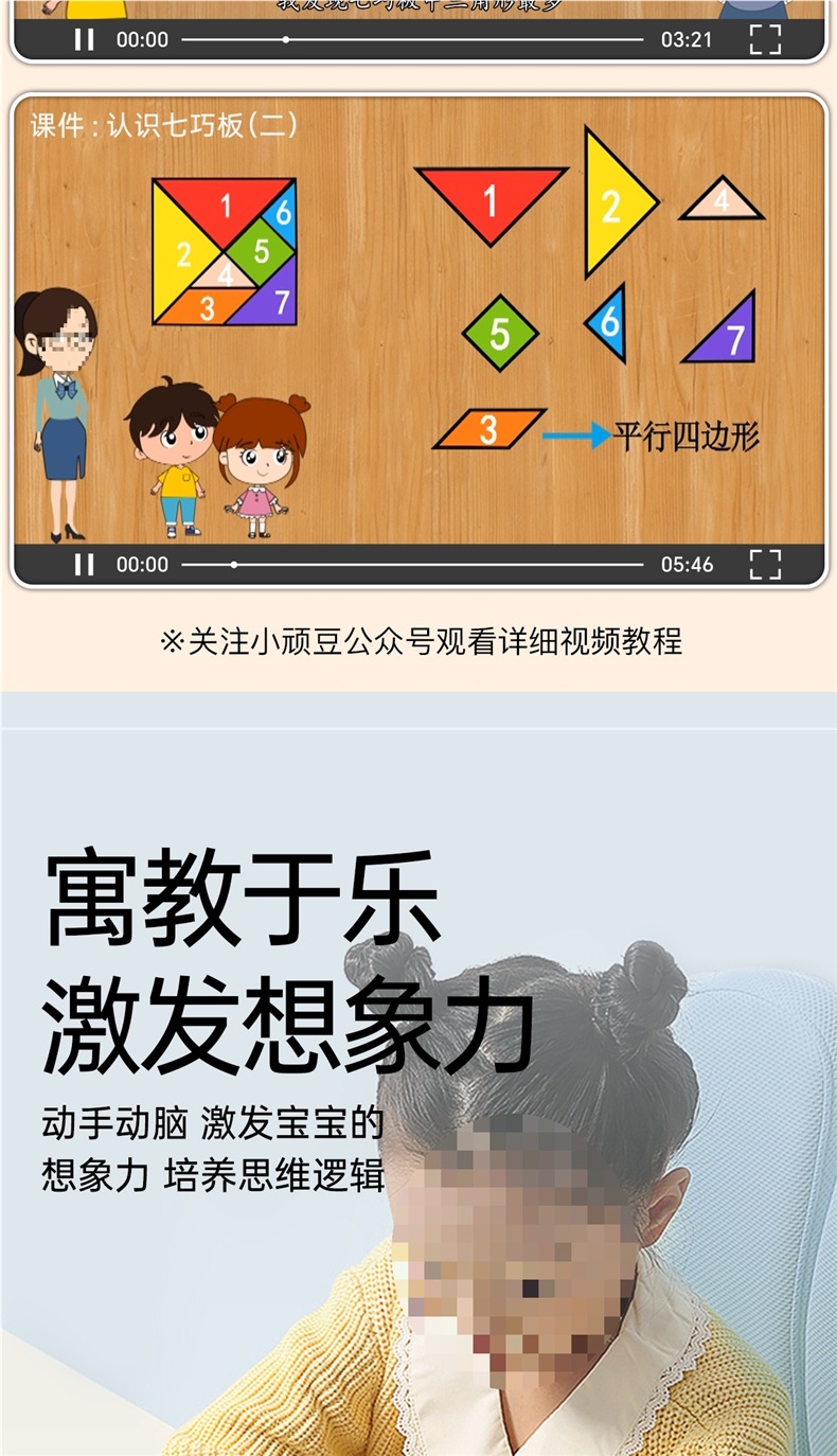 • !【14x14cm】榉木七巧板+时钟教具(附赠学习卡片)[]