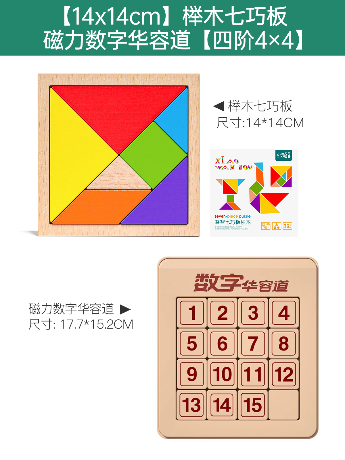 • !【14x14cm】榉木七巧板+磁力数字华容道【四阶4×4】[]