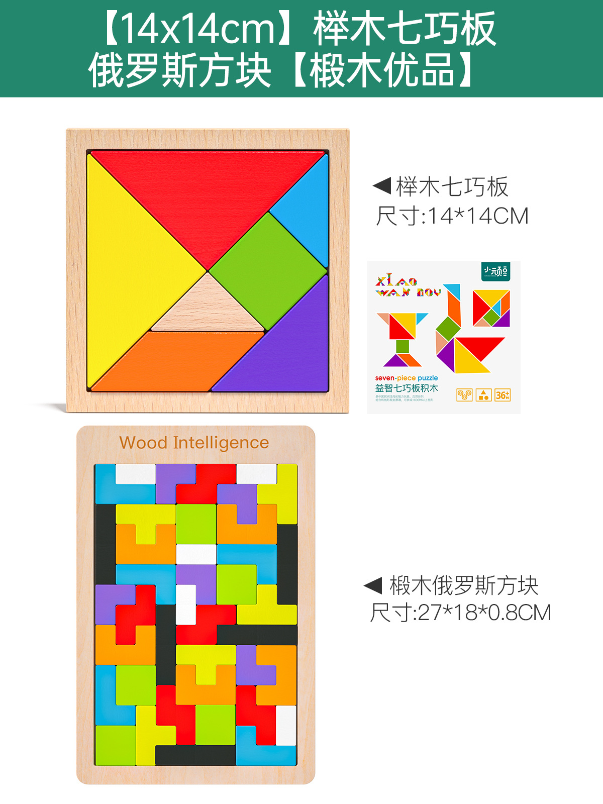 • !【14x14cm】榉木七巧板+俄罗斯方块【椴木优品】[]