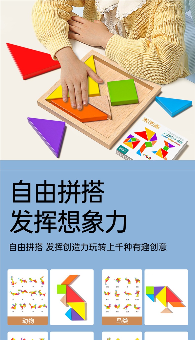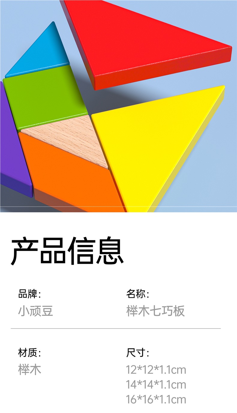 • !【12x12cm】榉木七巧板小学课本同款[]