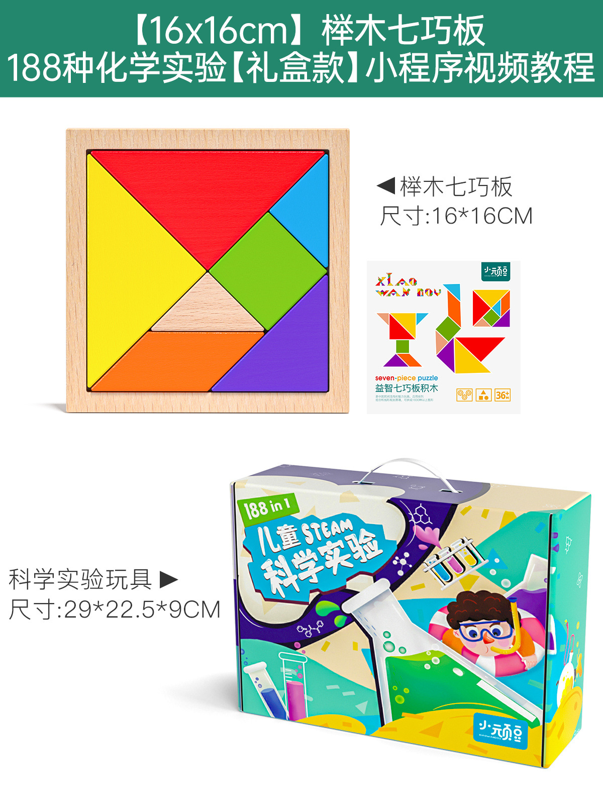 • !【16x16cm】榉木七巧板+188种化学实验【礼盒款】小程序视频教程[]