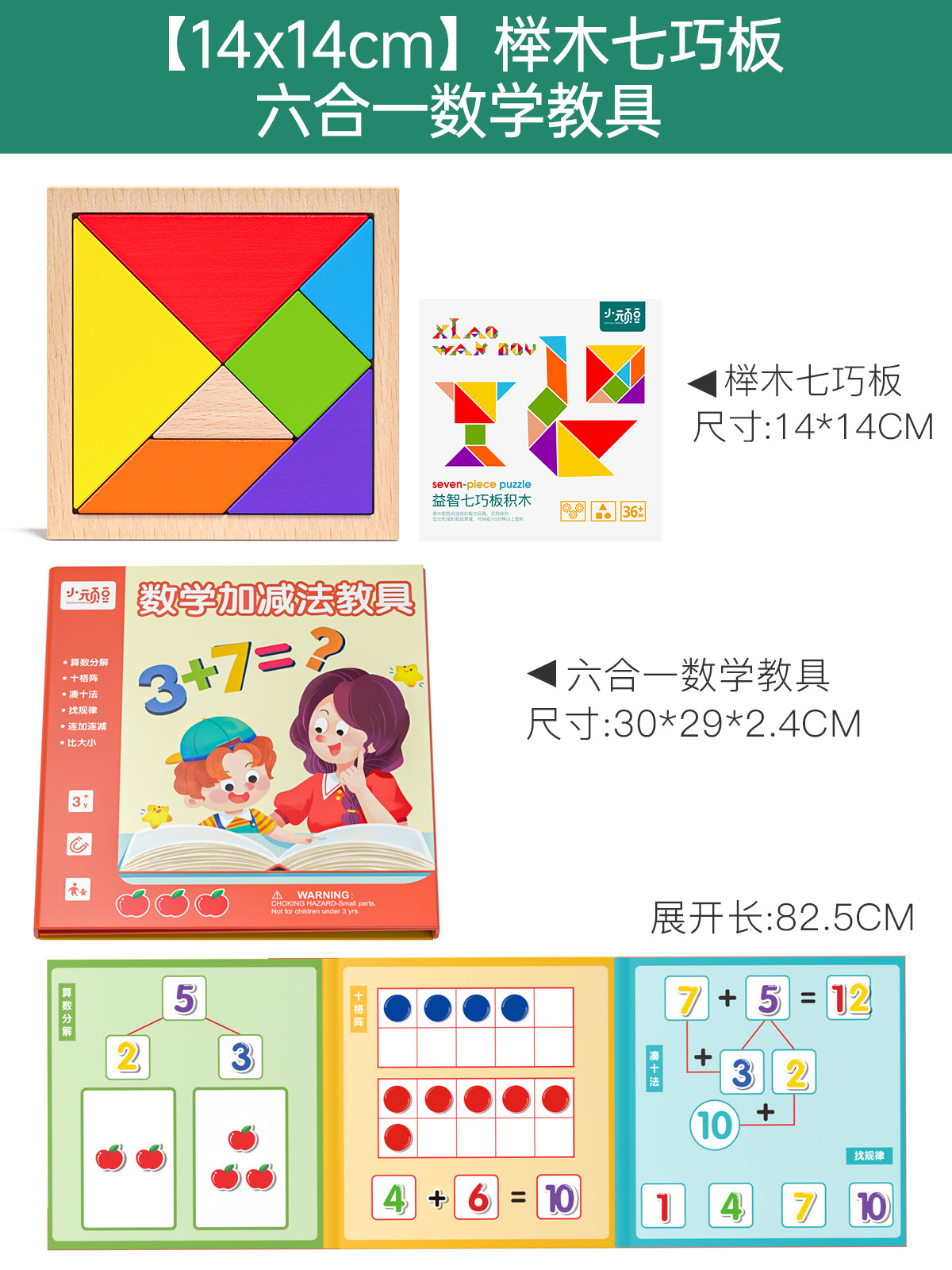 • !【14x14cm】榉木七巧板+六合一数学教具[]