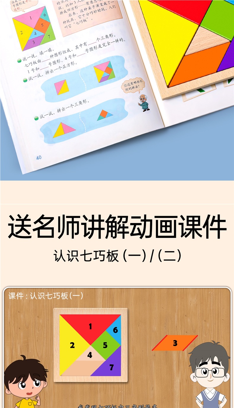• !【14x14cm】榉木七巧板小学课本同款[]