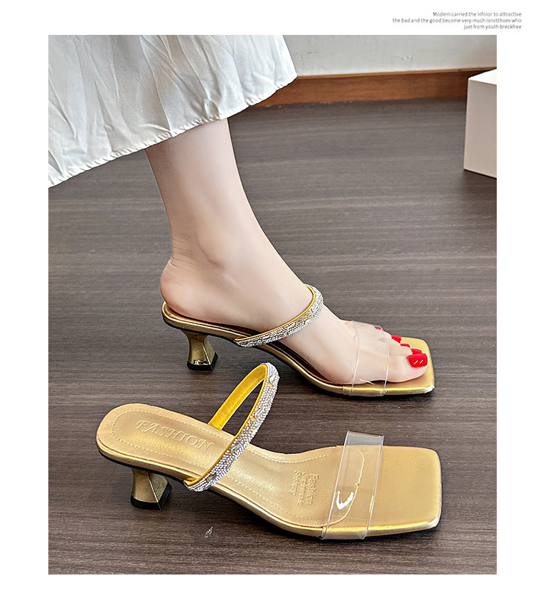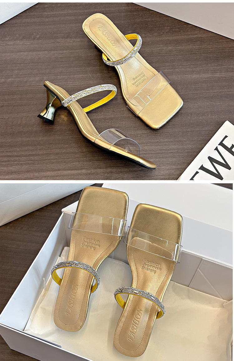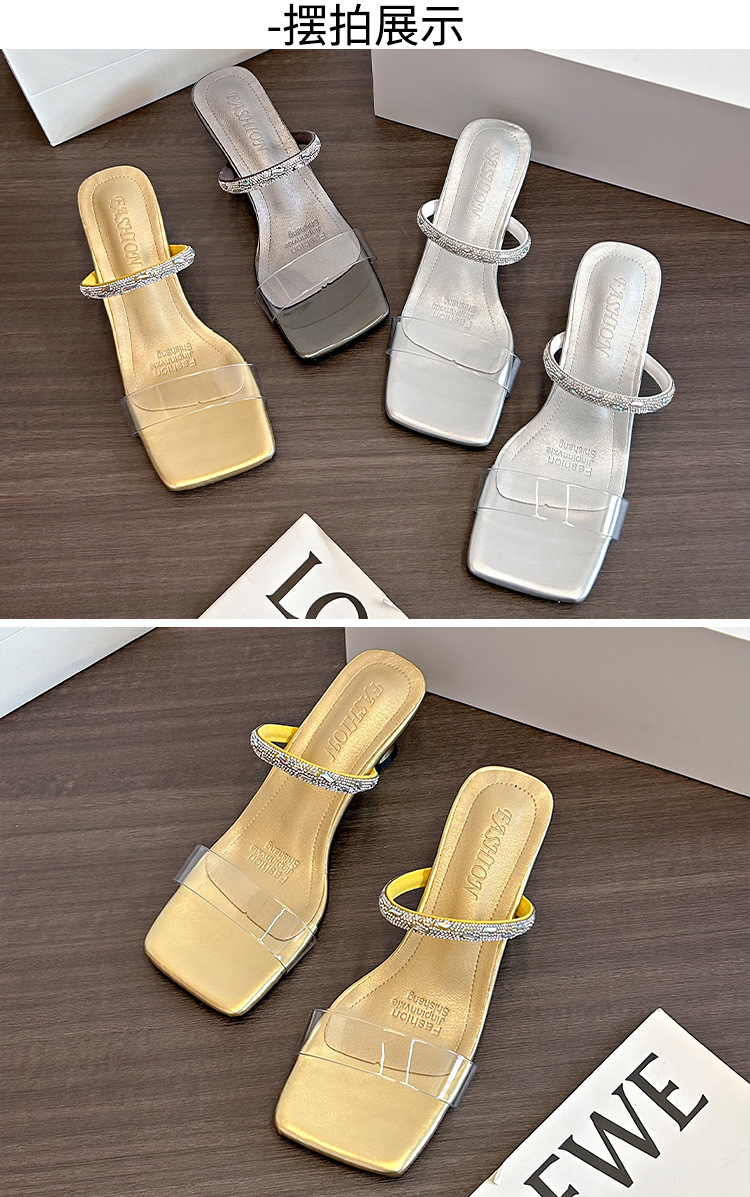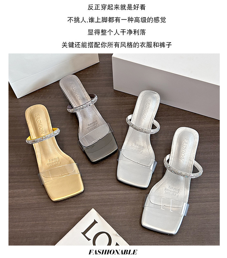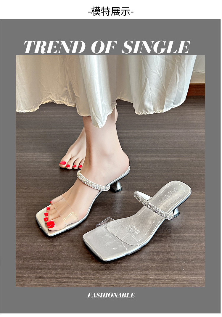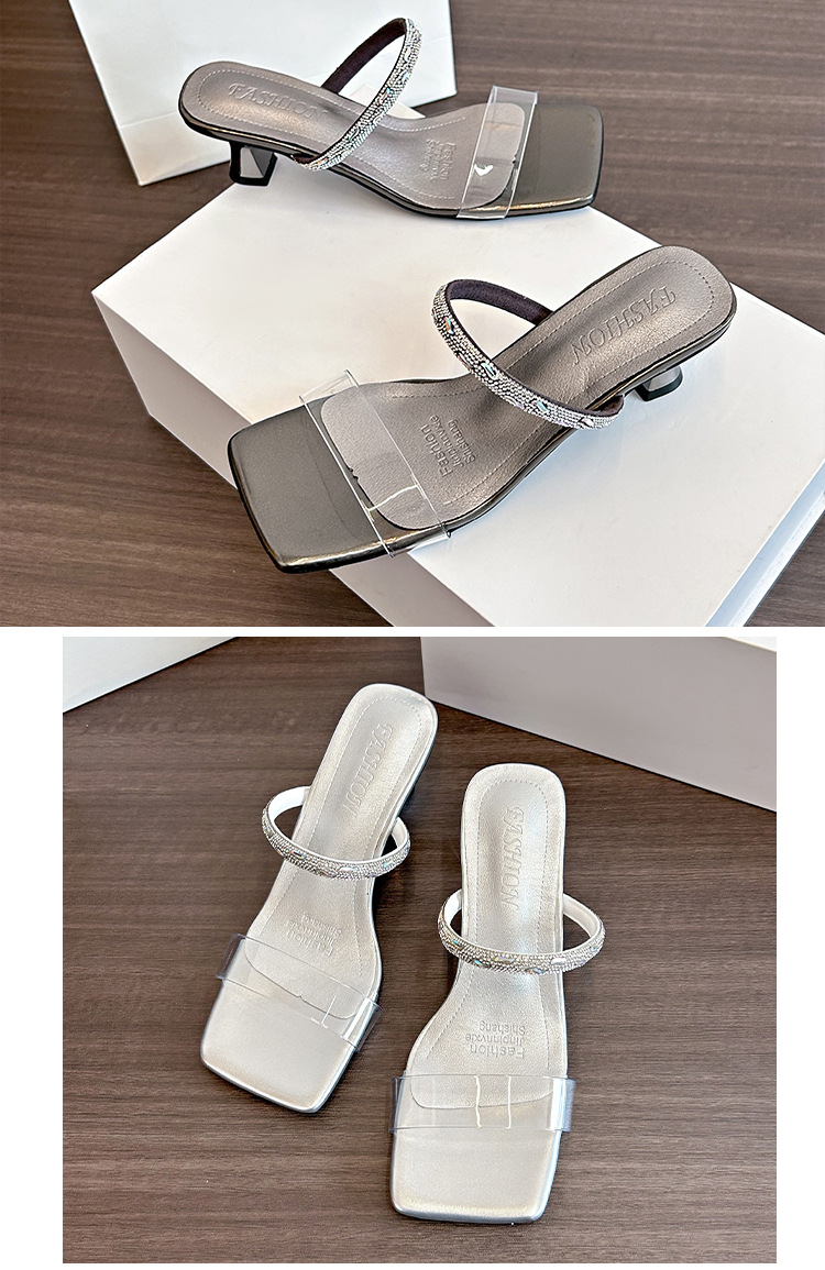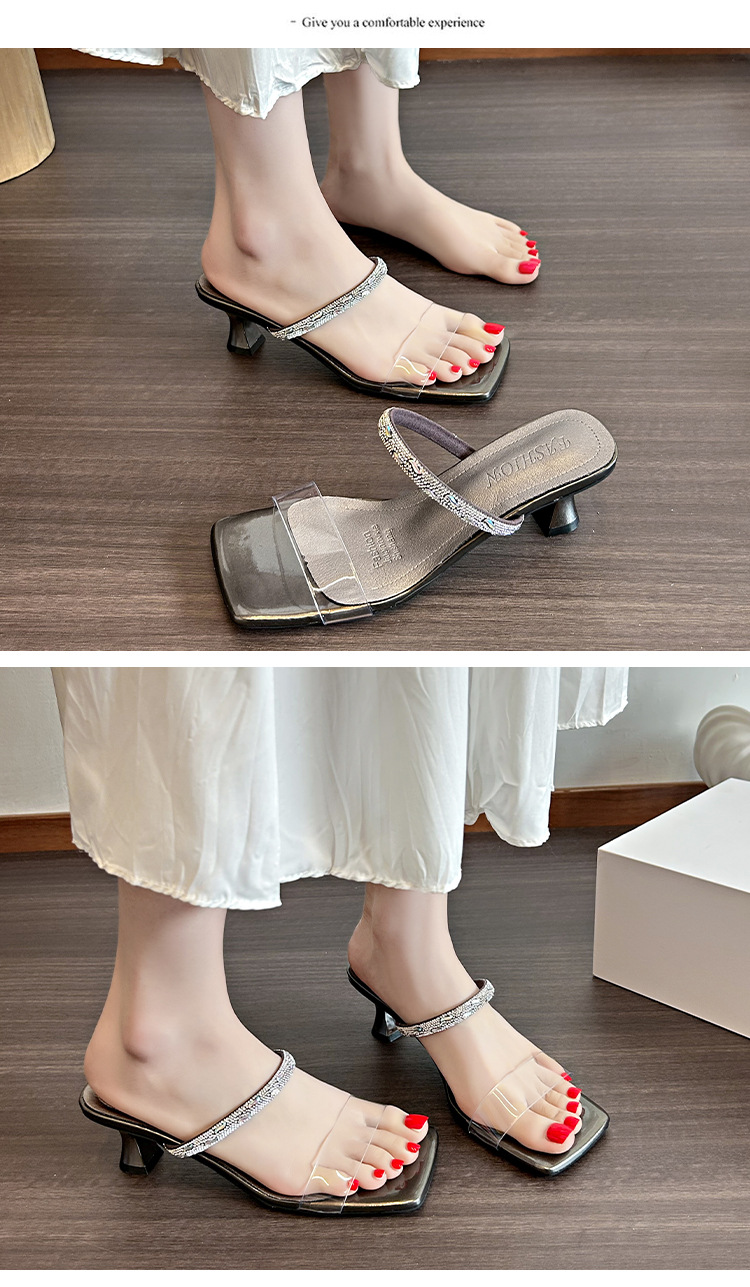 여성용 여름 아우터용 라인스톤 샌들, 투명 크리스탈 힐이 있는 부드러운 밑창의 하이힐 샌들, 빅사이즈스토어 가기