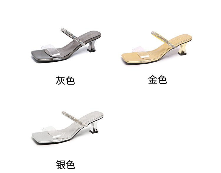 여성용 여름 아우터용 라인스톤 샌들, 투명 크리스탈 힐이 있는 부드러운 밑창의 하이힐 샌들, 빅사이즈