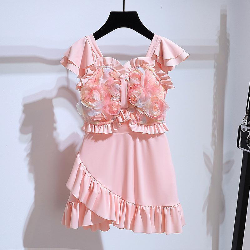 여자 수영복 여름 2024 새로운 스타일 연꽃 잎 스커트 원피스 수영복 도파민 어린이 공주 수영복스토어 가기