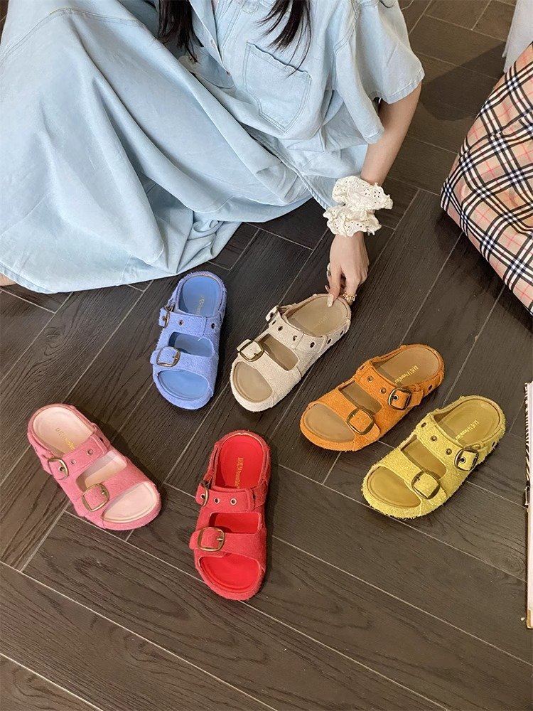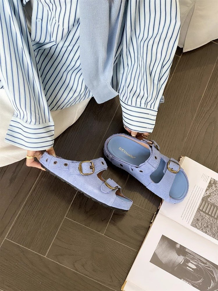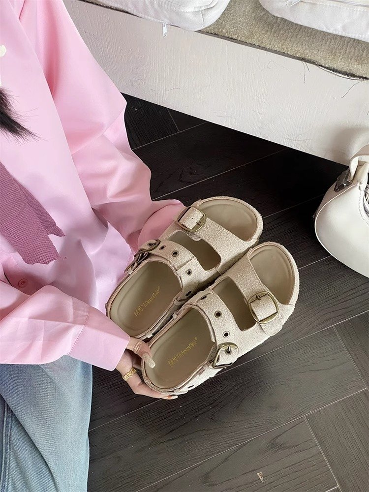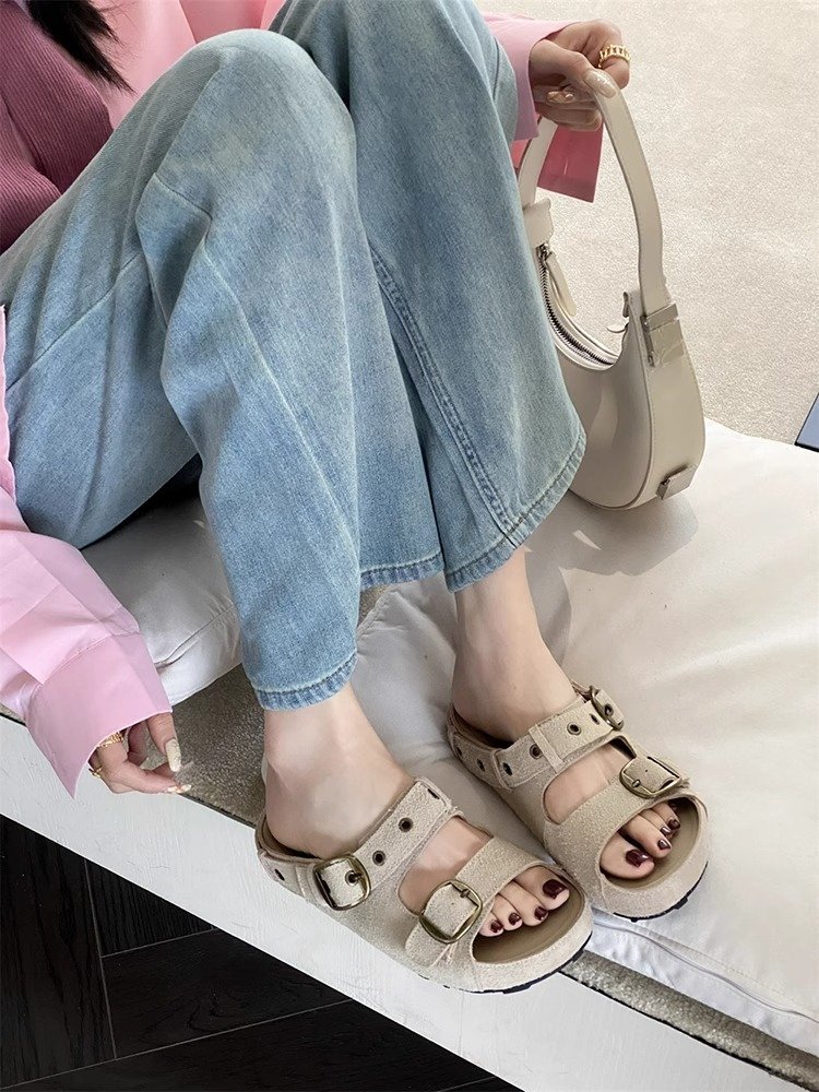 정품 가죽 두꺼운 밑창 샌들 및 슬리퍼 여성용 여름 의상 부드러운 밑창 2025 슬리퍼와 못생긴 귀여운 로마 비치 버켄 스톡 트렌디 슬리퍼스토어 가기