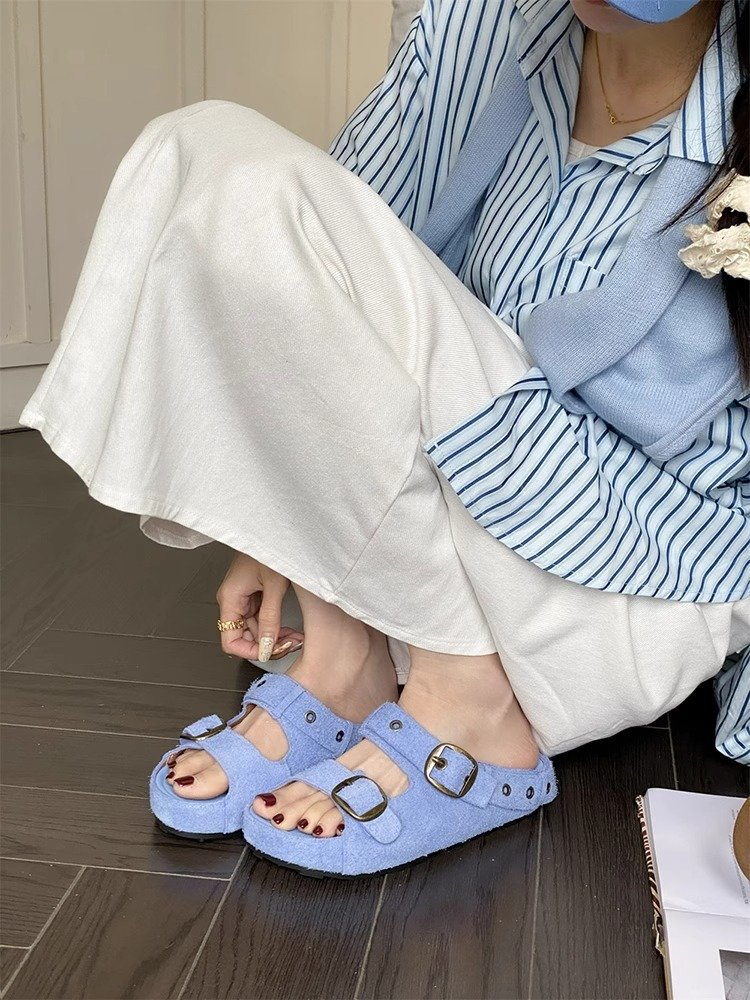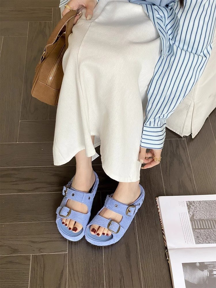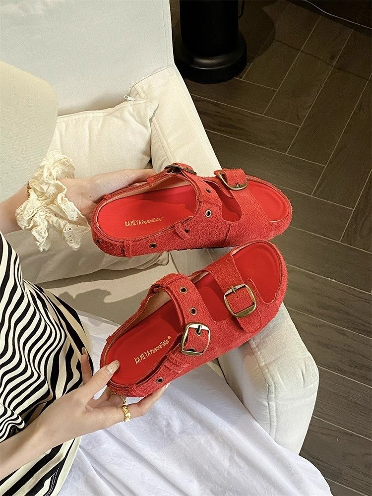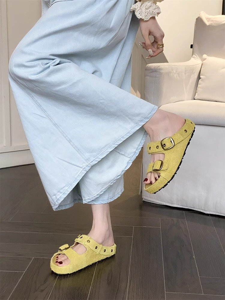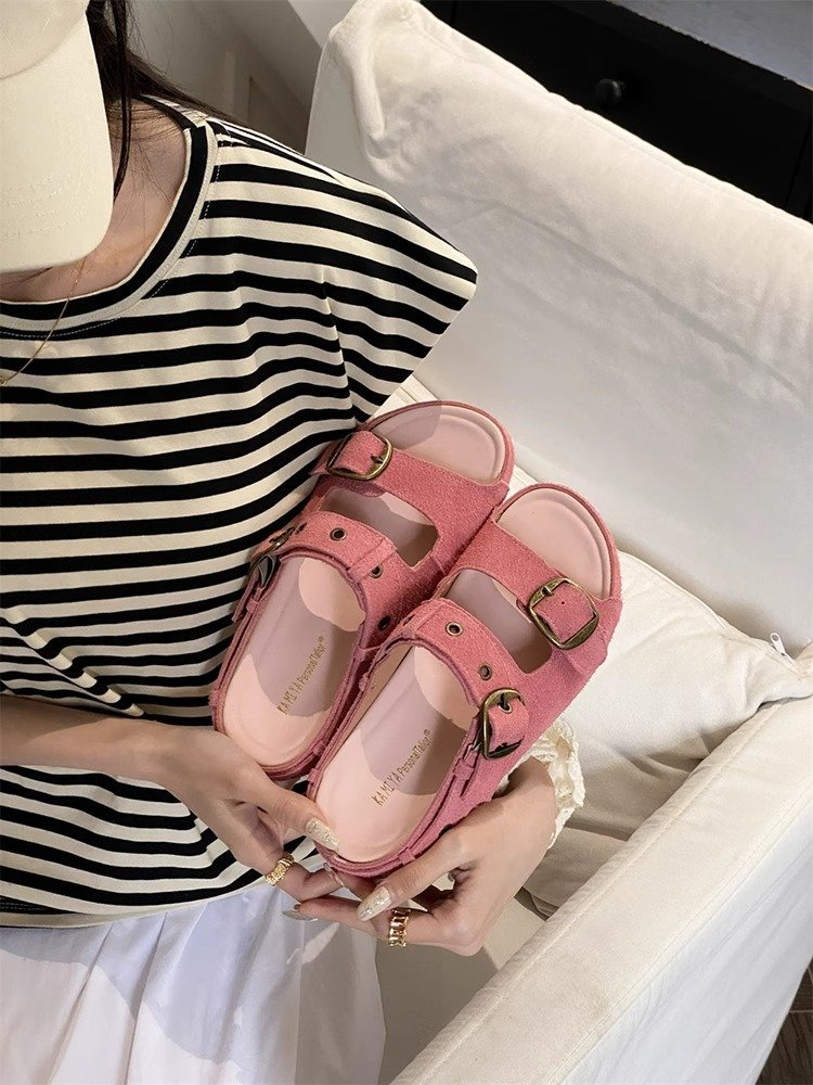 정품 가죽 두꺼운 밑창 샌들 및 슬리퍼 여성용 여름 의상 부드러운 밑창 2025 슬리퍼와 못생긴 귀여운 로마 비치 버켄 스톡 트렌디 슬리퍼스토어 가기