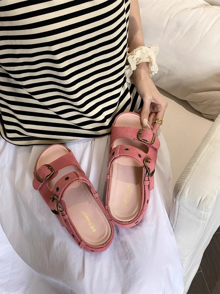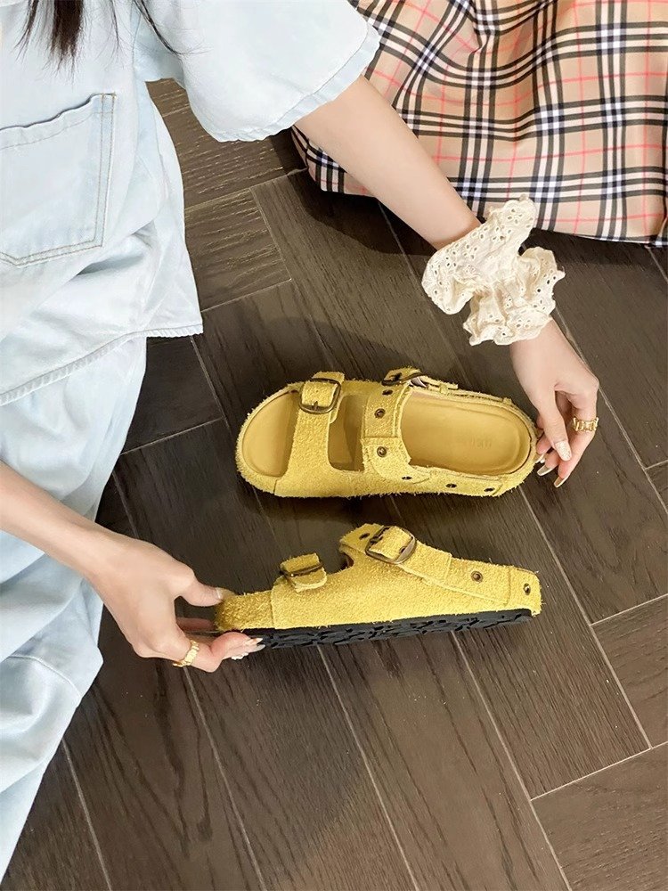 정품 가죽 두꺼운 밑창 샌들 및 슬리퍼 여성용 여름 의상 부드러운 밑창 2025 슬리퍼와 못생긴 귀여운 로마 비치 버켄 스톡 트렌디 슬리퍼