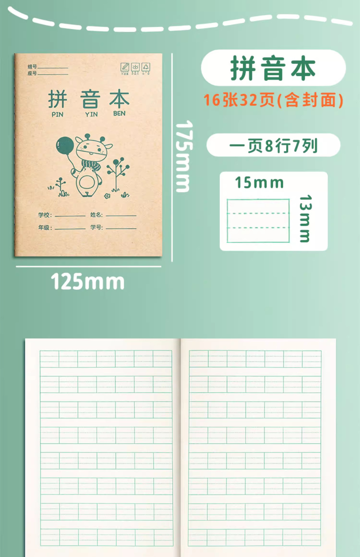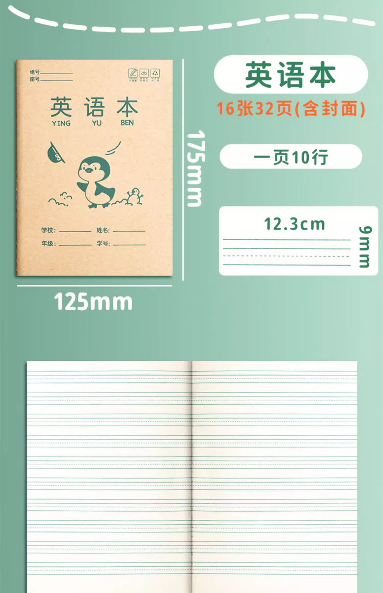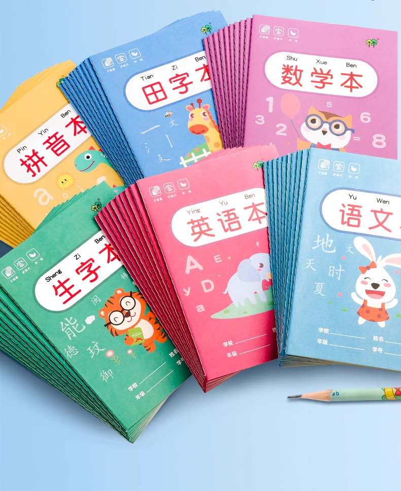 초등학생 숙제 공책, 유치원 병음 공책, 필기체 연습장, 영어 공책, 1학년 필기체 연습장, 필기체 격자 공책