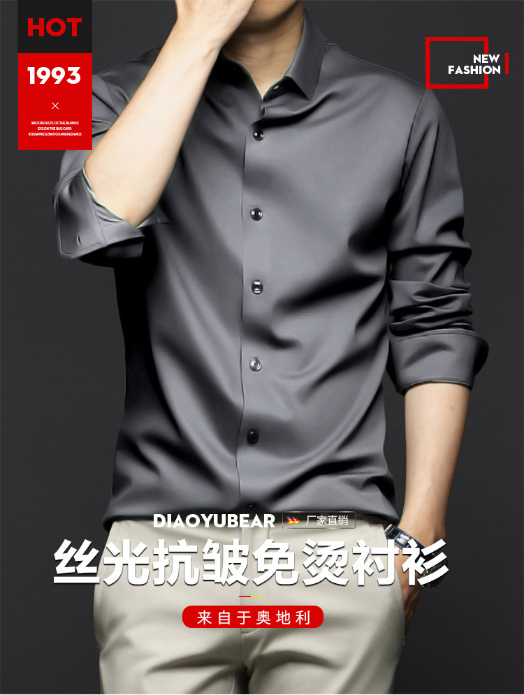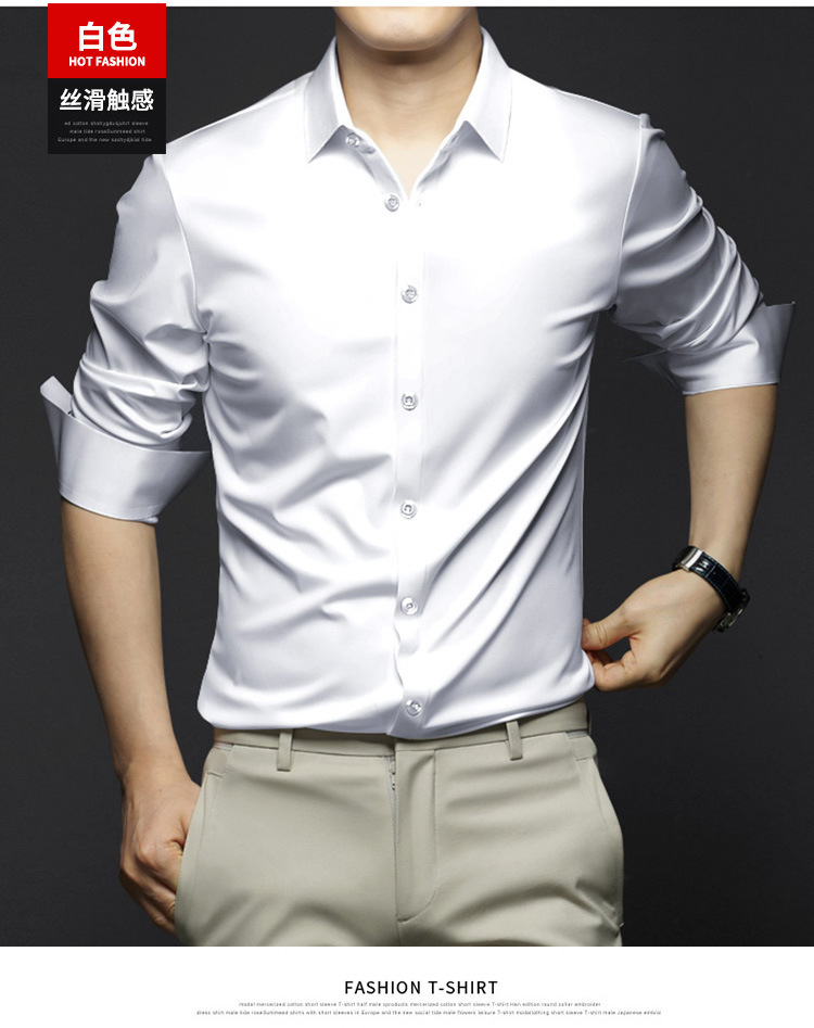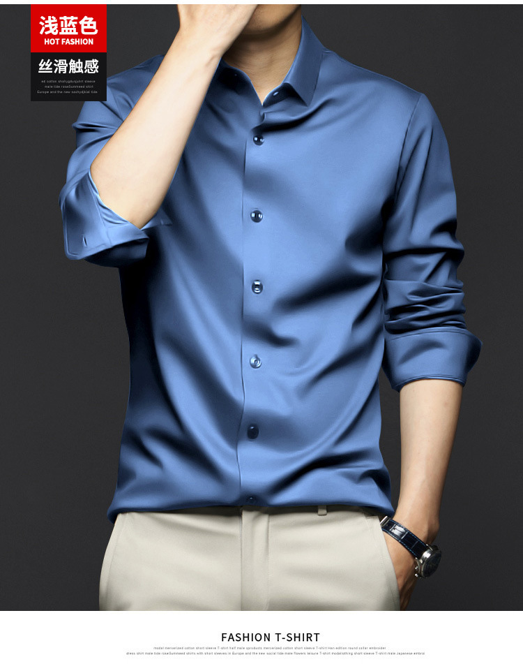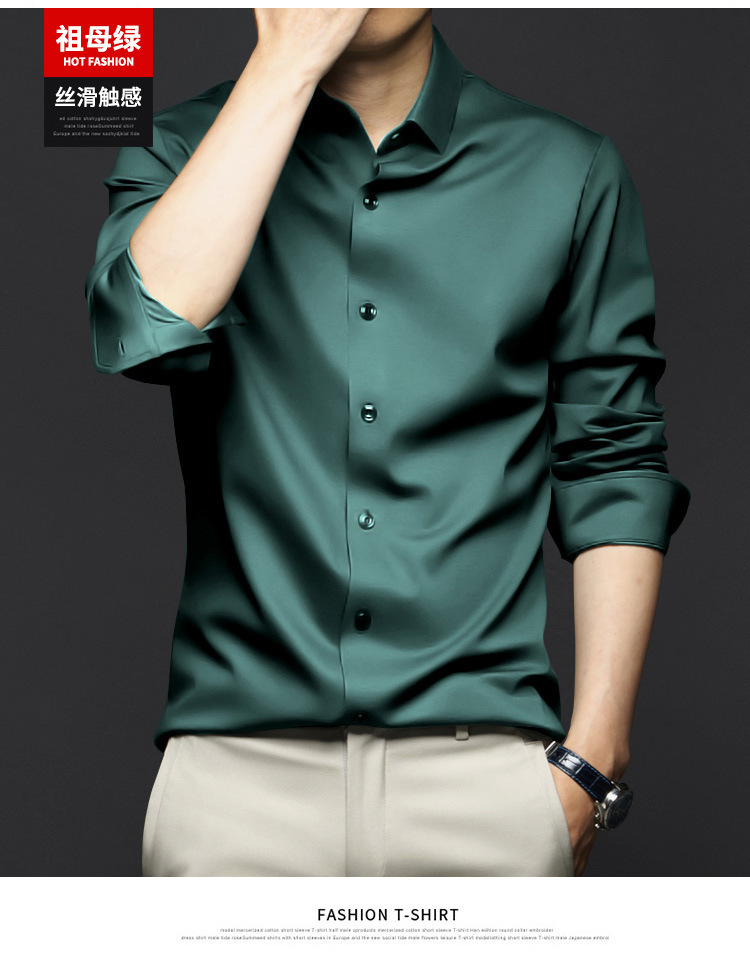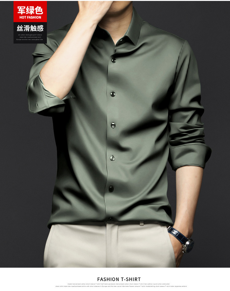 봄, 가을 남성용 긴팔 셔츠, 주름 방지, 다림질 없음, 전문 정장, 트렌디한 비즈니스 고급 아이스 실크 셔츠, 블랙 인치 셔츠스토어 가기