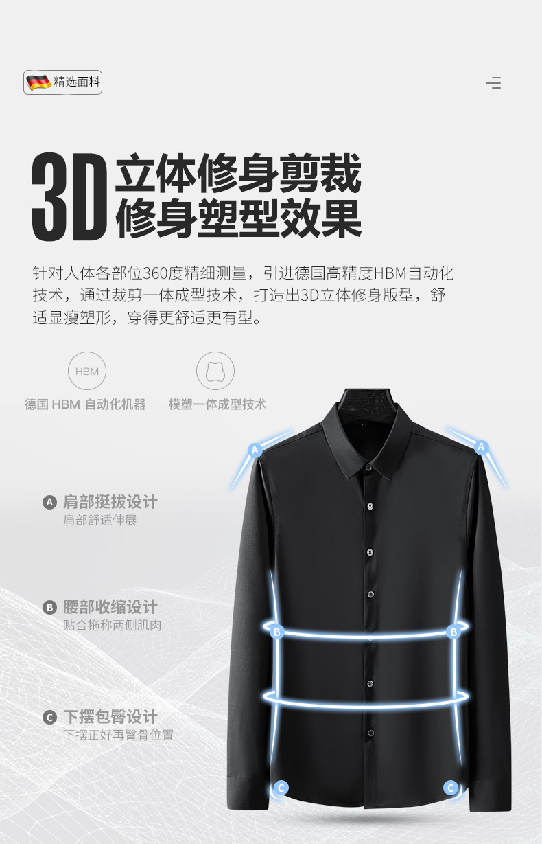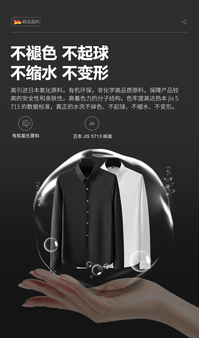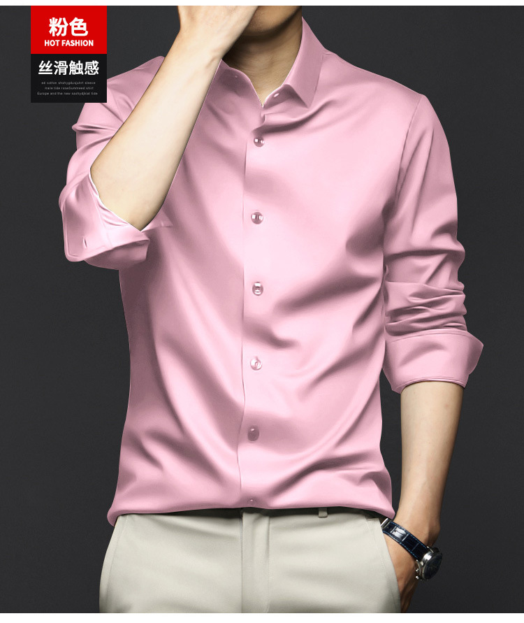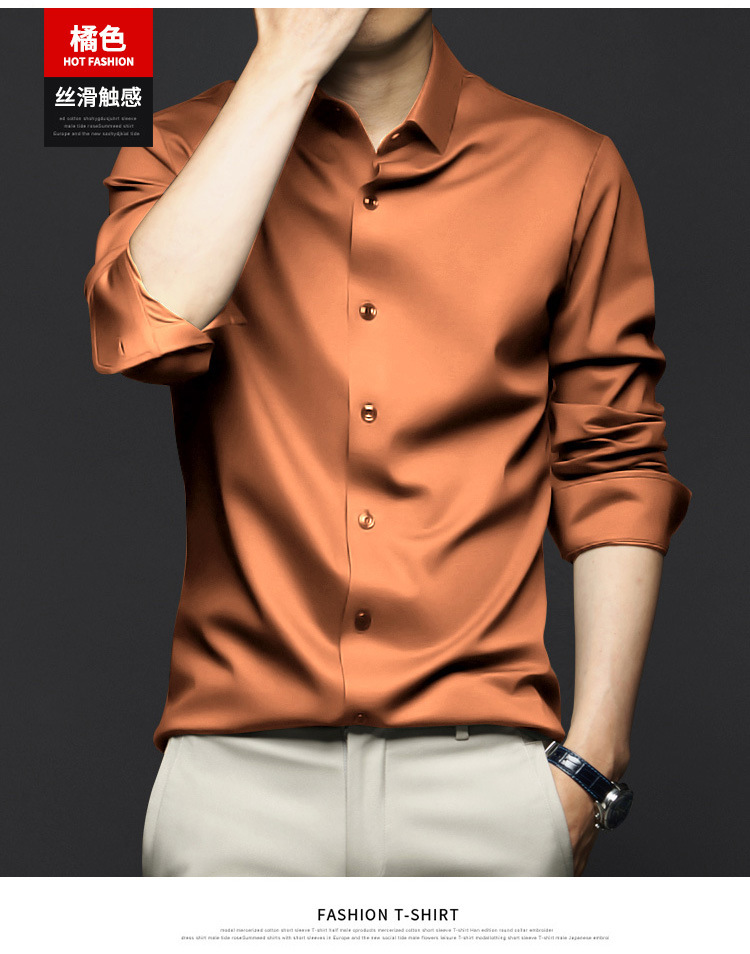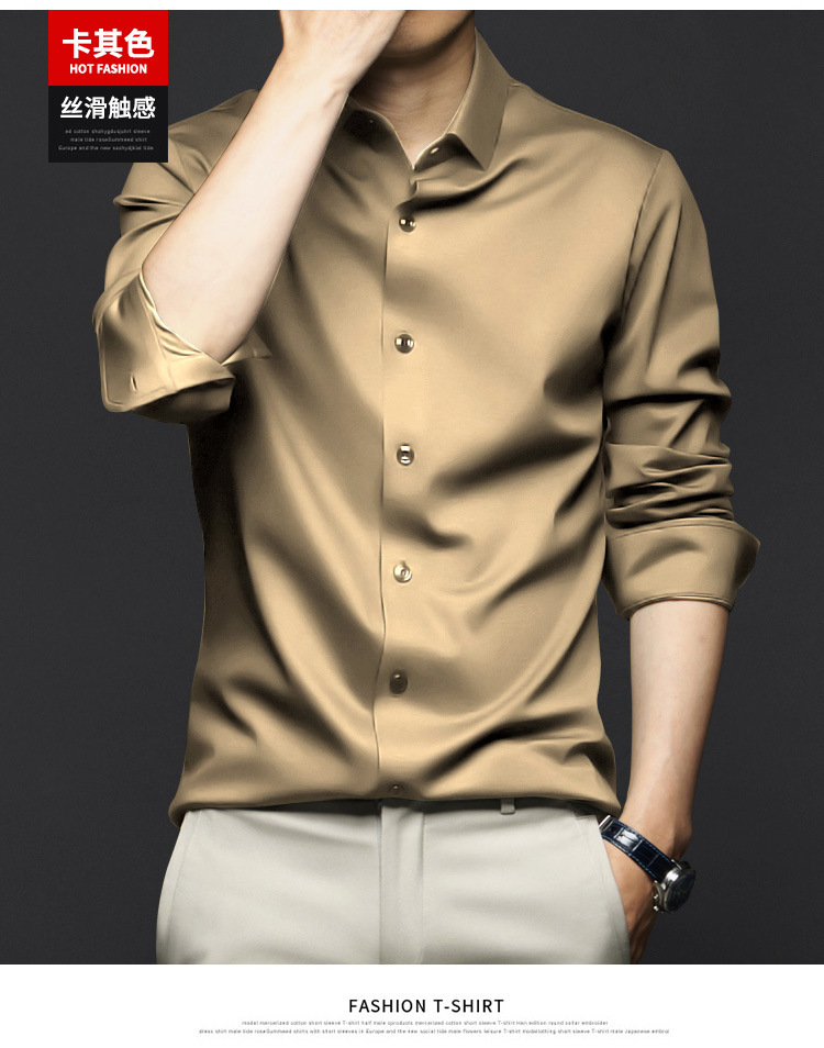 봄, 가을 남성용 긴팔 셔츠, 주름 방지, 다림질 없음, 전문 정장, 트렌디한 비즈니스 고급 아이스 실크 셔츠, 블랙 인치 셔츠스토어 가기