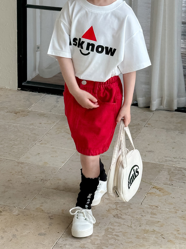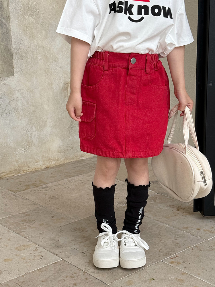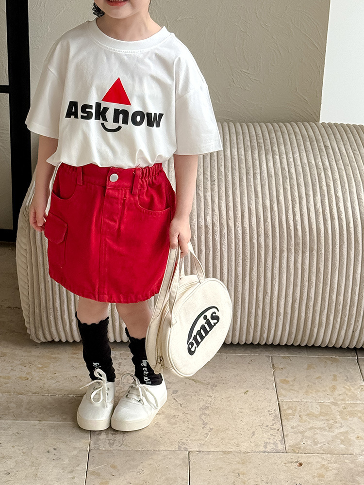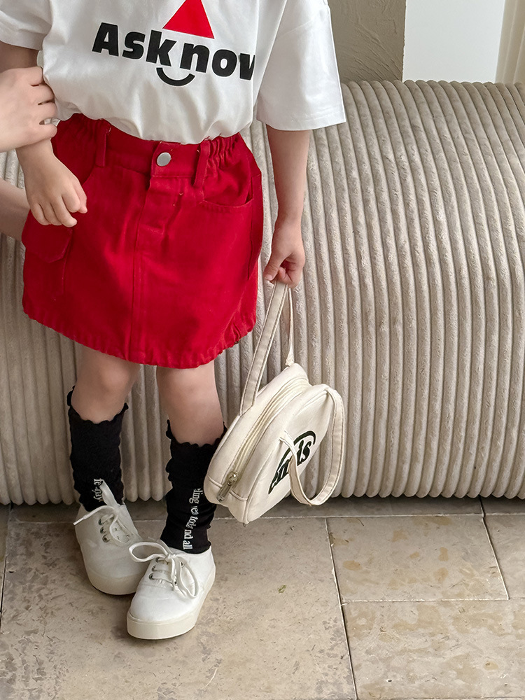 안전 바지를 입은 소녀 데님 오버스커트 2025 여름 새 일본과 한국 어린이 작업복 포켓 연필 스커트 짧은 치마스토어 가기