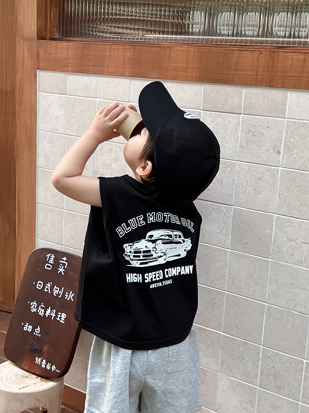 超级洋气的美式汽车印花背心,经典黑白色系,奶酷风格也不要错过,纯棉面料柔软亲肤,后面是宝宝喜欢的汽车印花图案,前面立体口袋设计,简约不失细节。