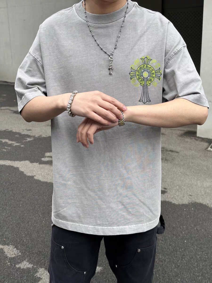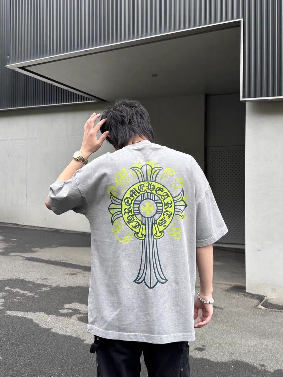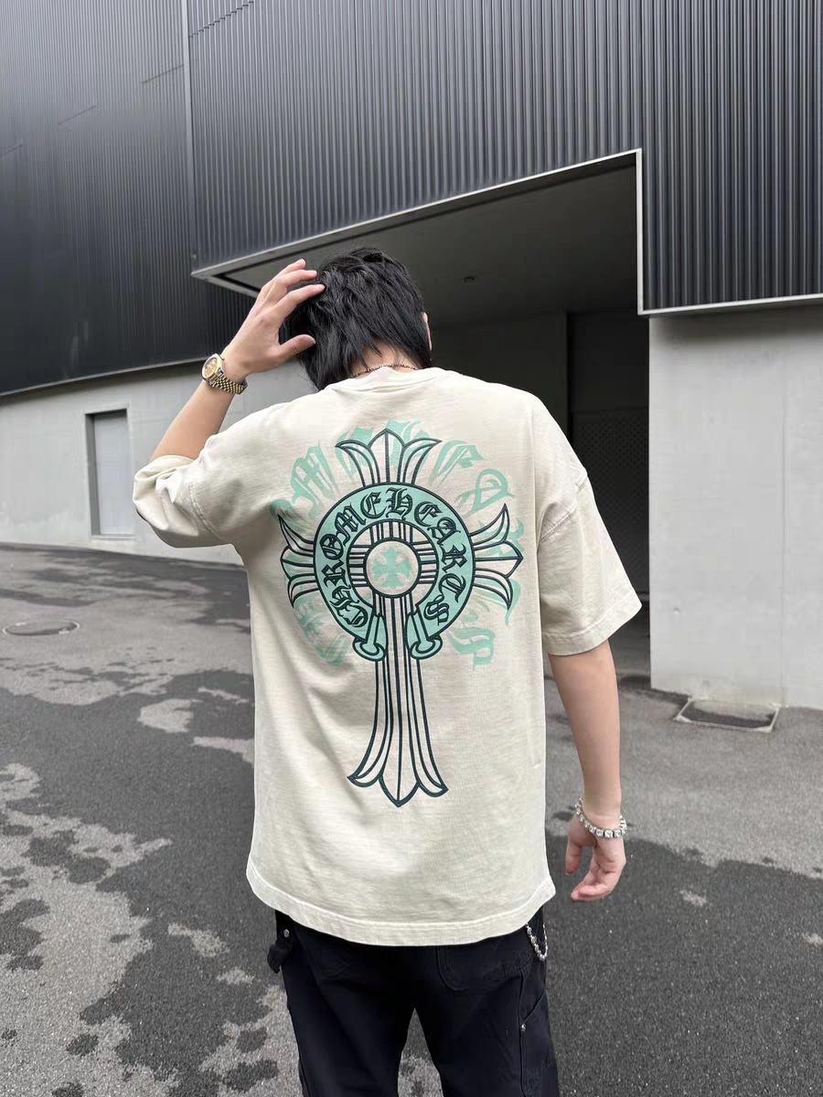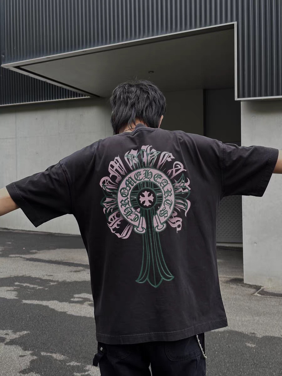 Chrome Hearts23ss 컬러풀한 말굽 버클 크로스 반팔 남성용 퓨어 코튼 플러스 사이즈 티셔츠의 올바른 버전스토어 가기