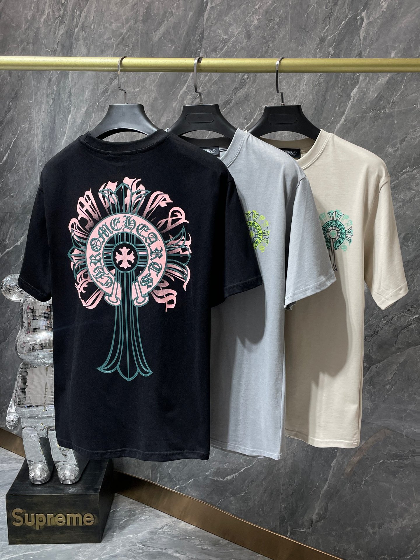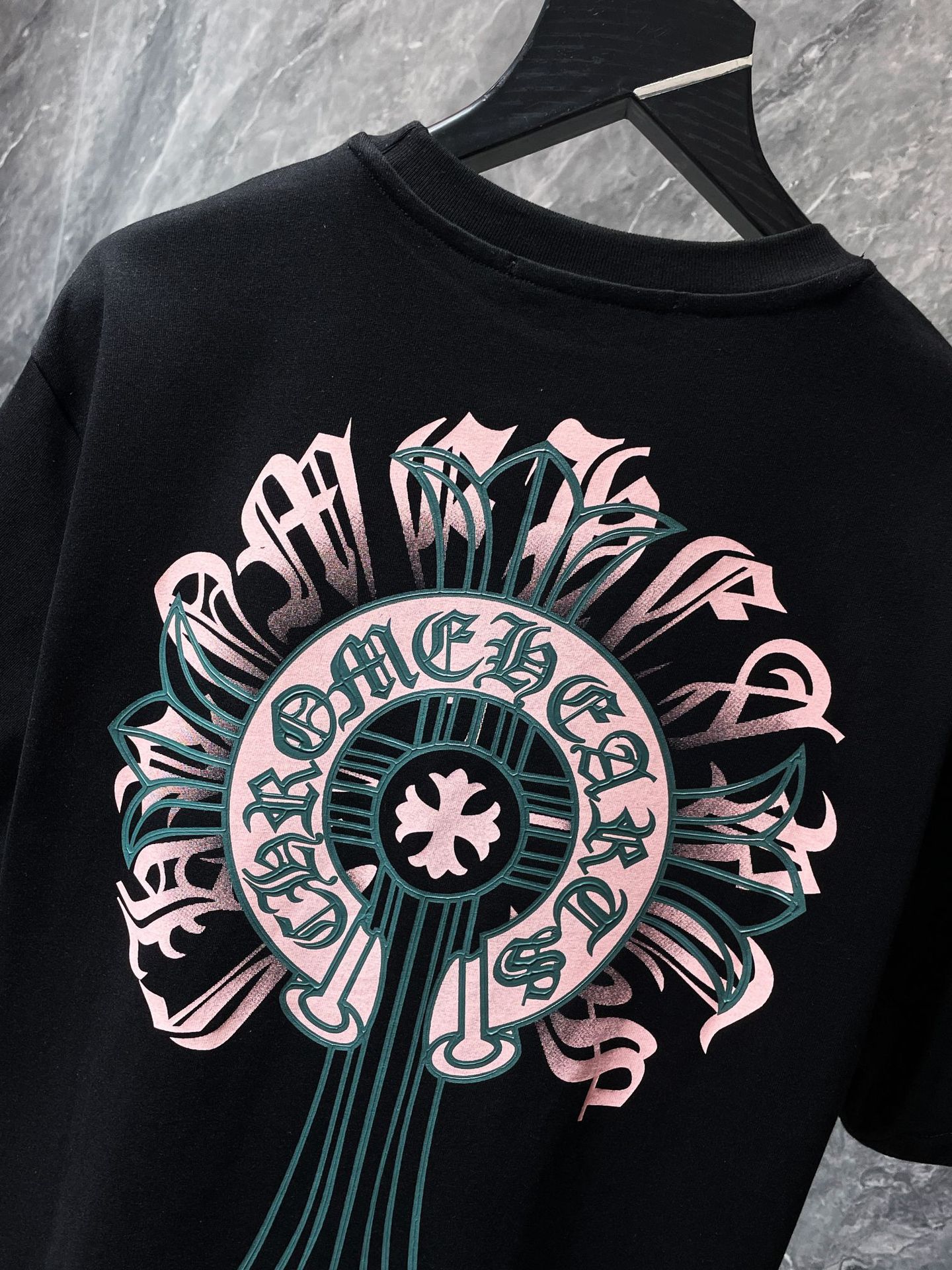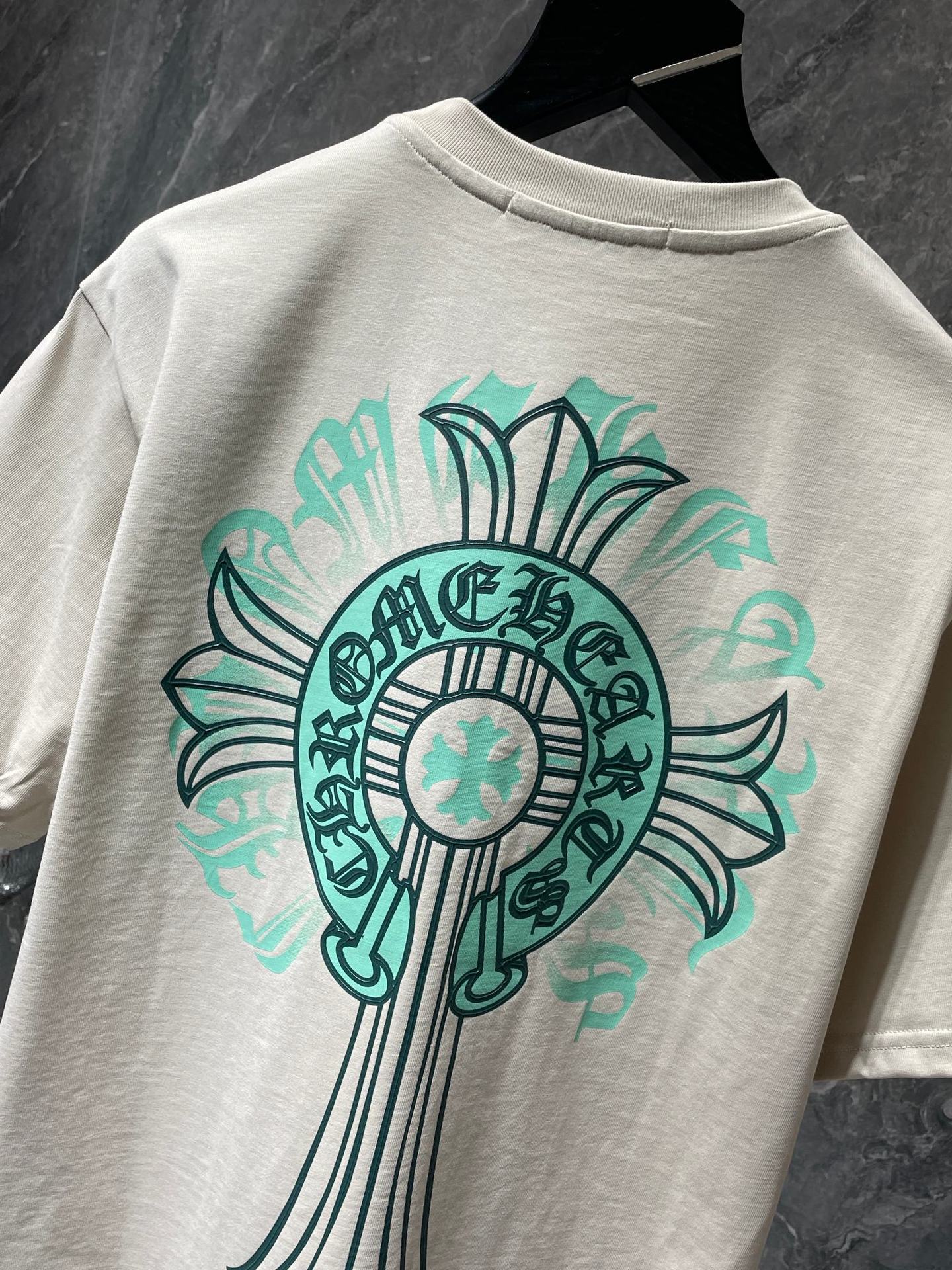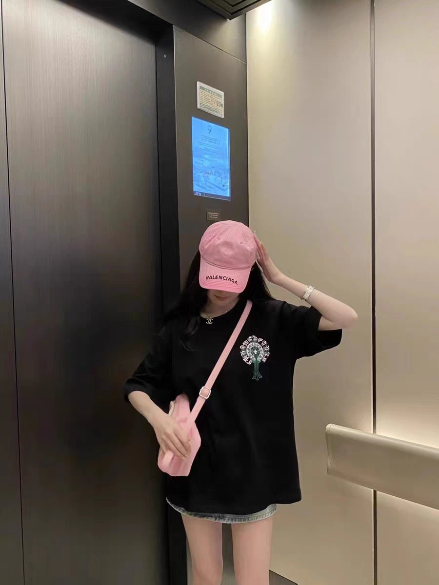 Chrome Hearts23ss 컬러풀한 말굽 버클 크로스 반팔 남성용 퓨어 코튼 플러스 사이즈 티셔츠의 올바른 버전스토어 가기