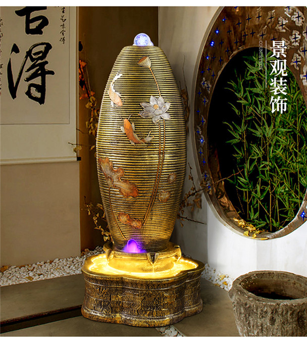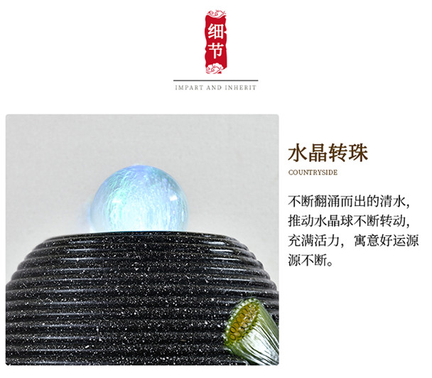 중국 스타일의 흐르는 물 분수 순환 풍수 공 거실 홈 실내 입구 풍경 바닥 습화 장식 장식품