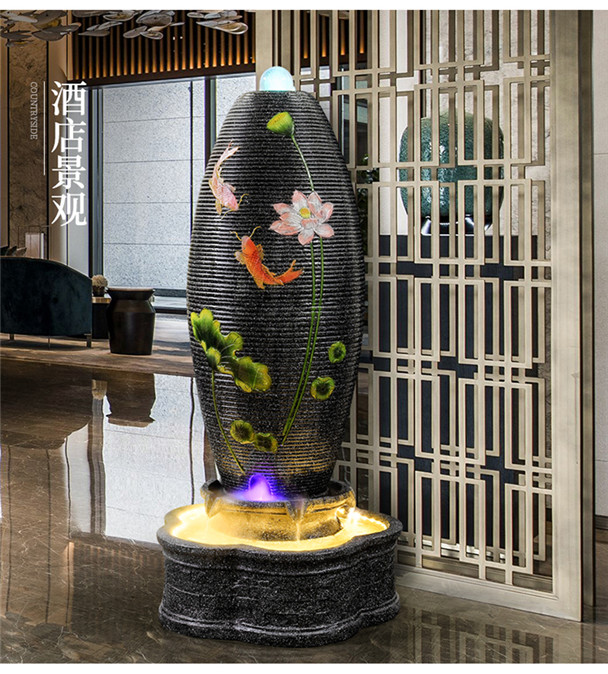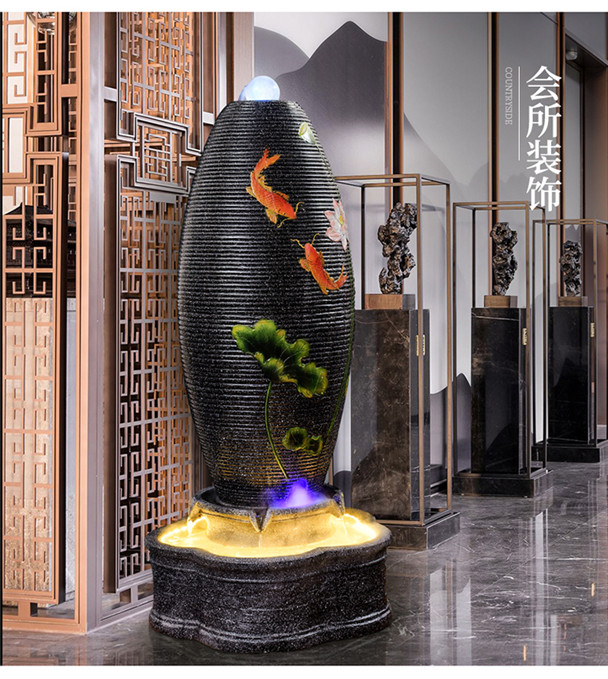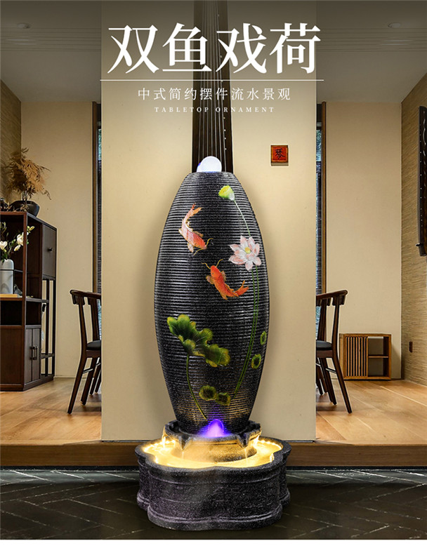 중국 스타일의 흐르는 물 분수 순환 풍수 공 거실 홈 실내 입구 풍경 바닥 습화 장식 장식품스토어 가기