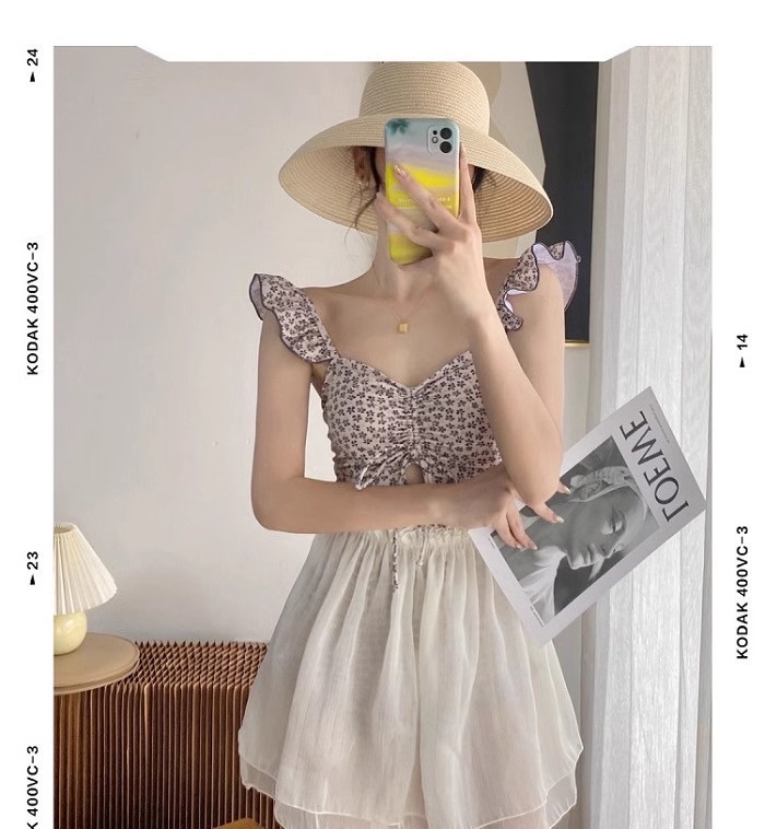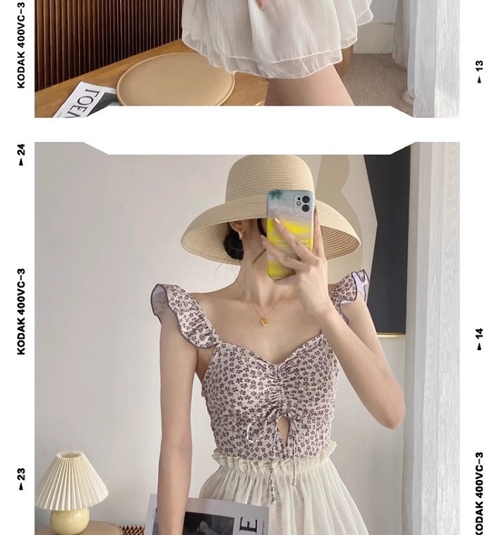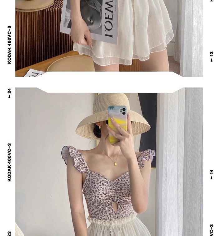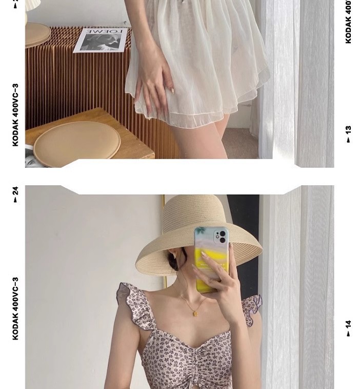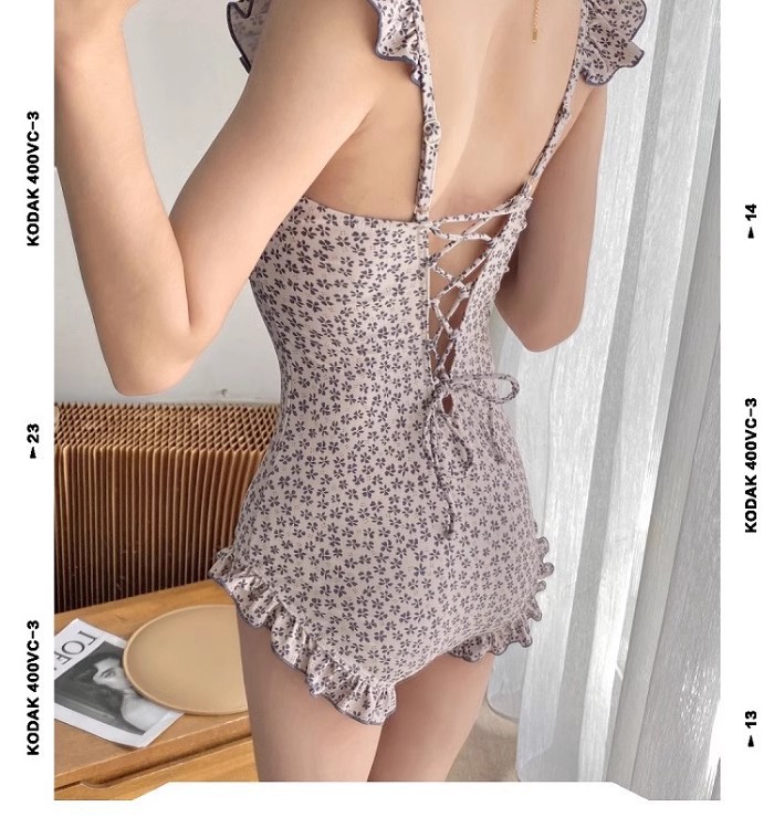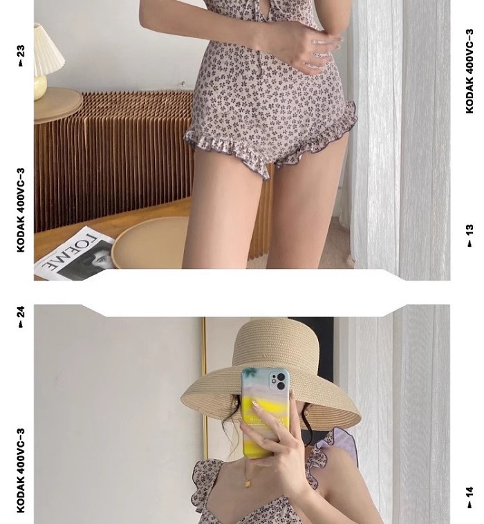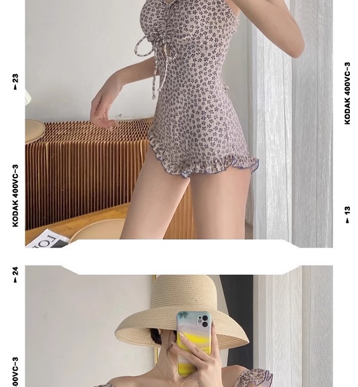결합 된 2 피스 벨리 커버 슬리밍 수영복 여성 배꼽을 덮는 순수한 욕망 작은 신선한 꽃 휴가 보수적 온천스토어 가기