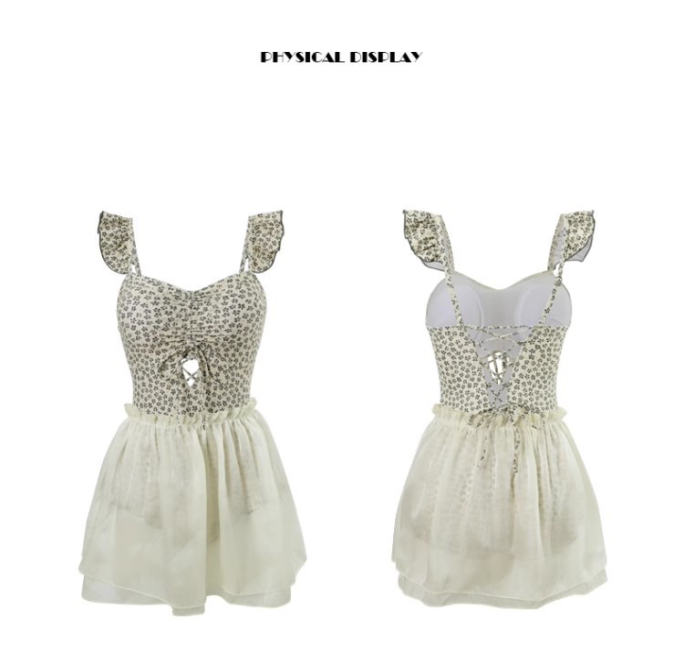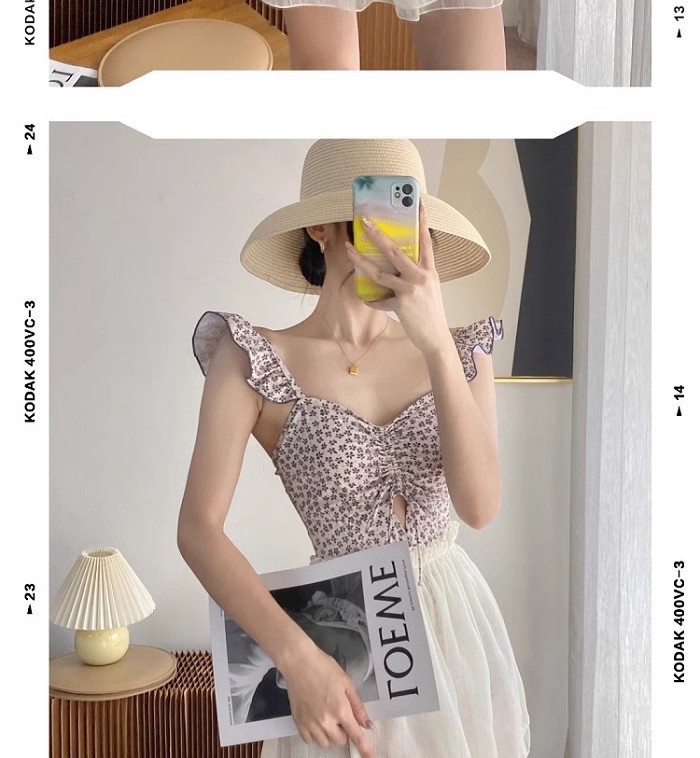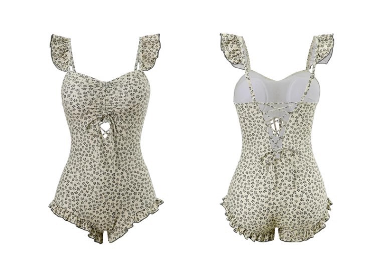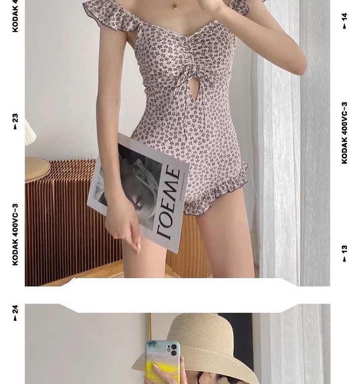 결합 된 2 피스 벨리 커버 슬리밍 수영복 여성 배꼽을 덮는 순수한 욕망 작은 신선한 꽃 휴가 보수적 온천