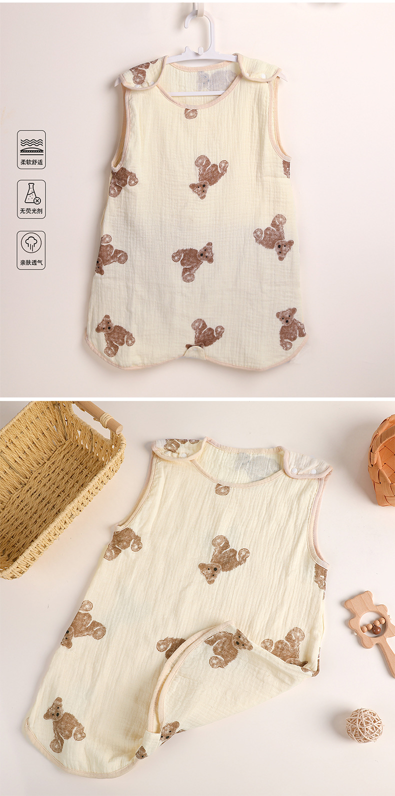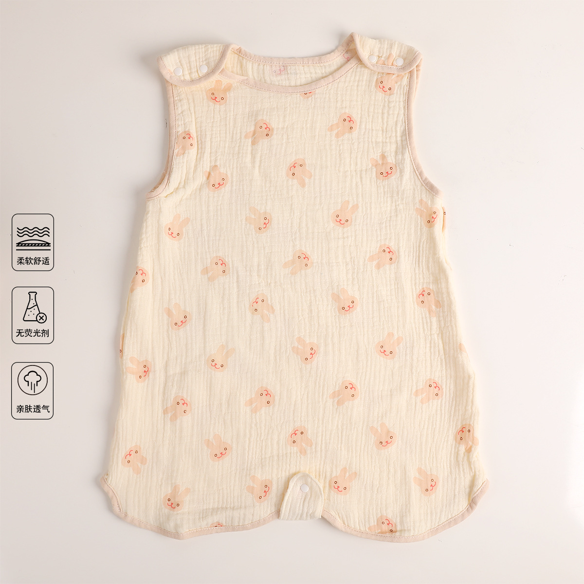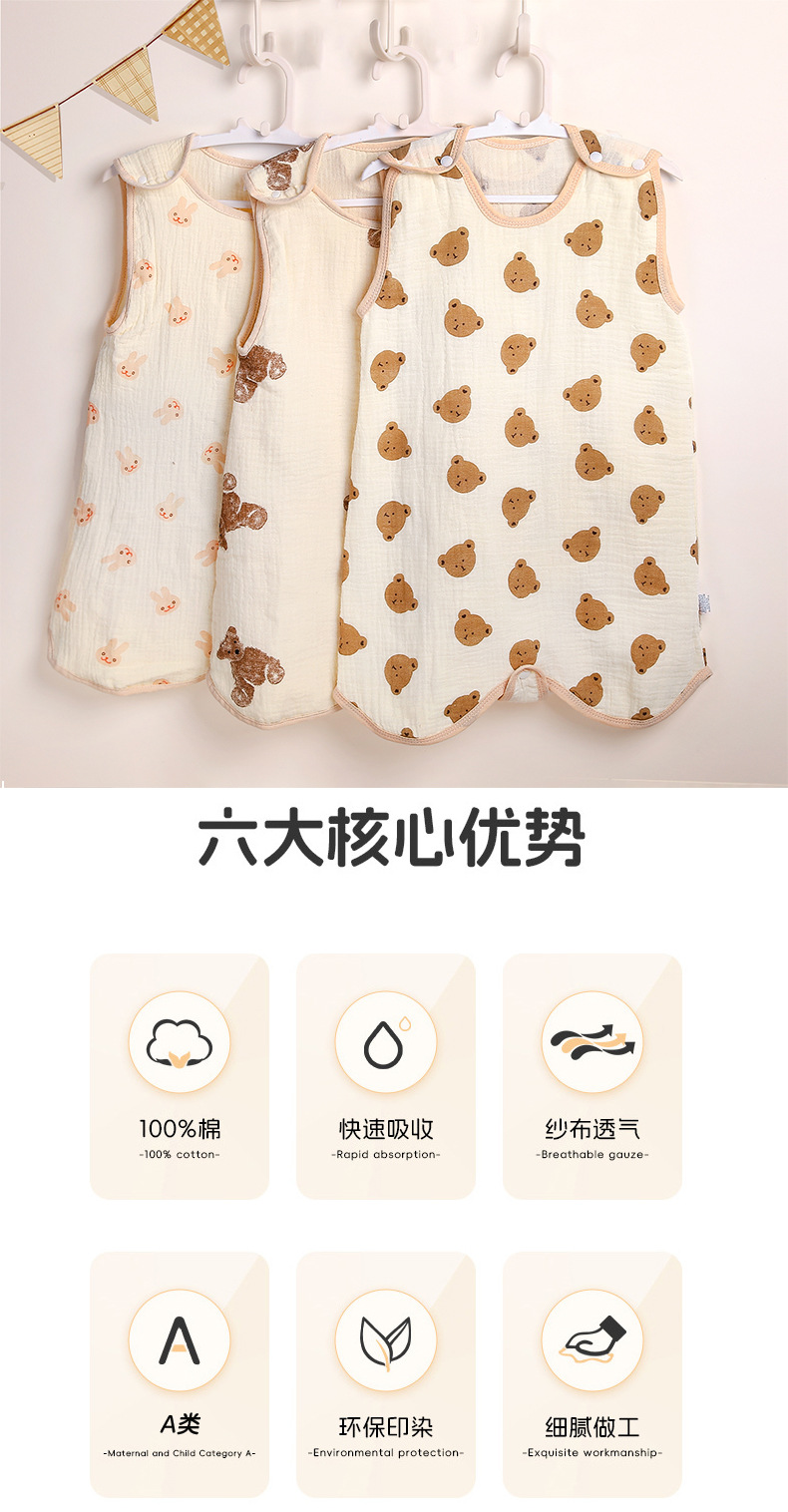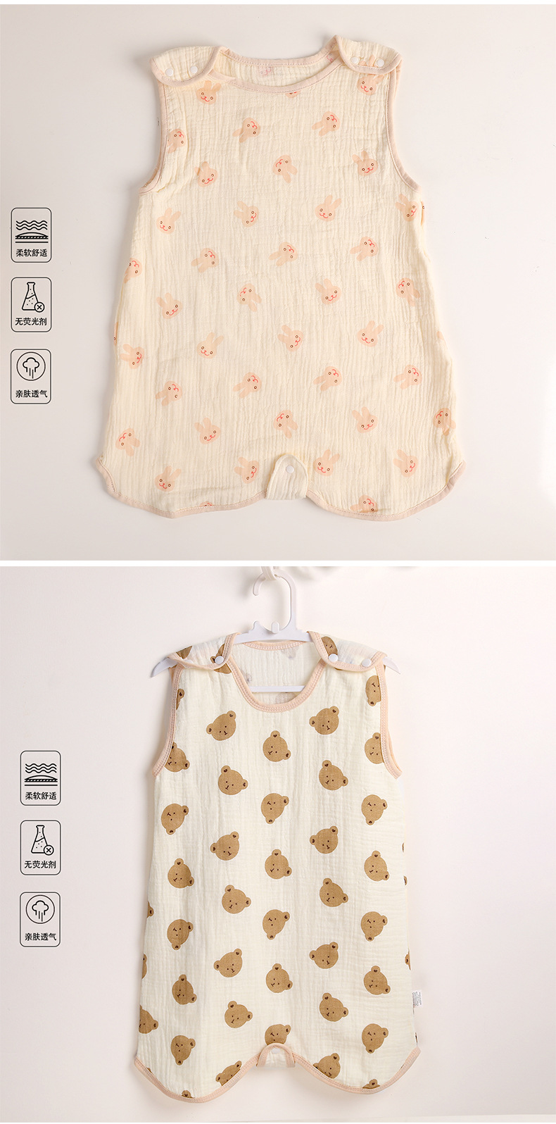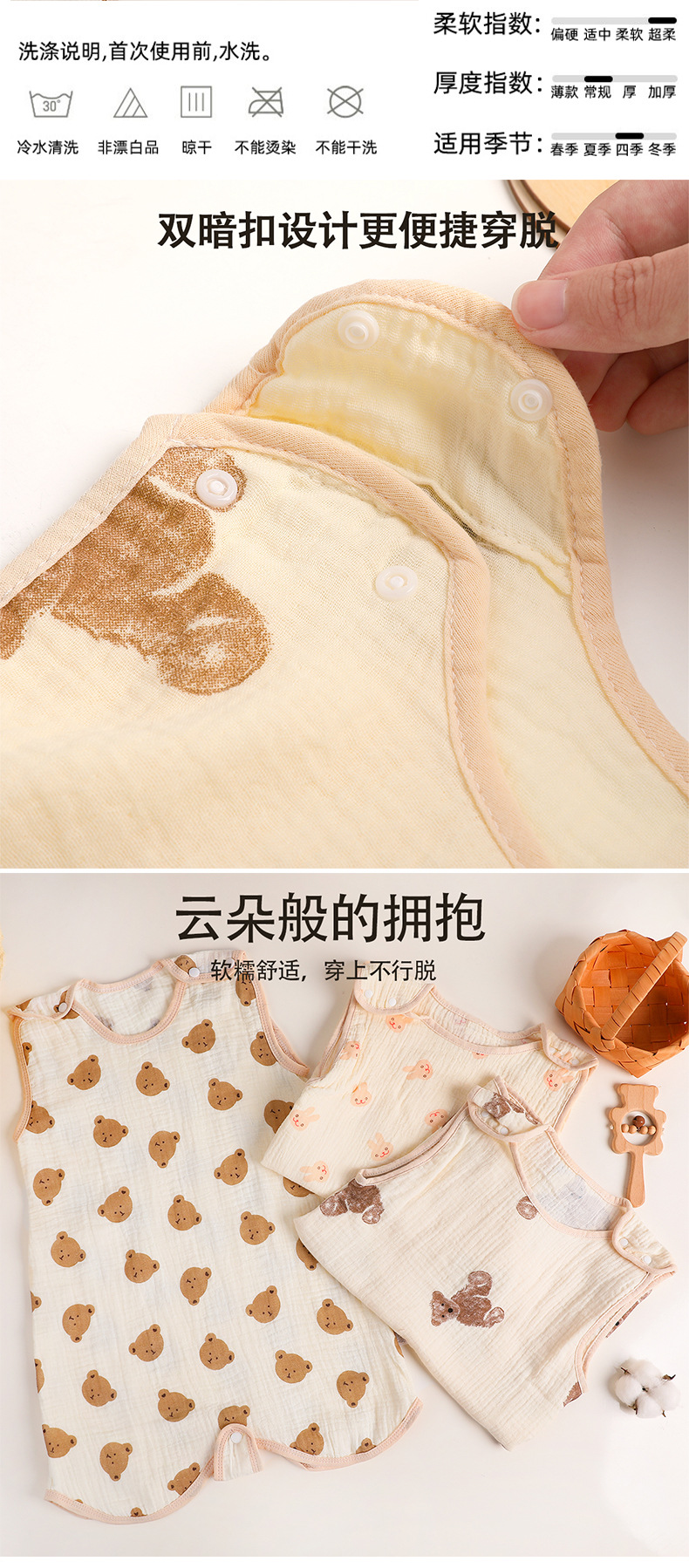 名称:宝宝爬纯棉纱布睡袋无袖背心新生儿童防踢被婴儿夏季薄款