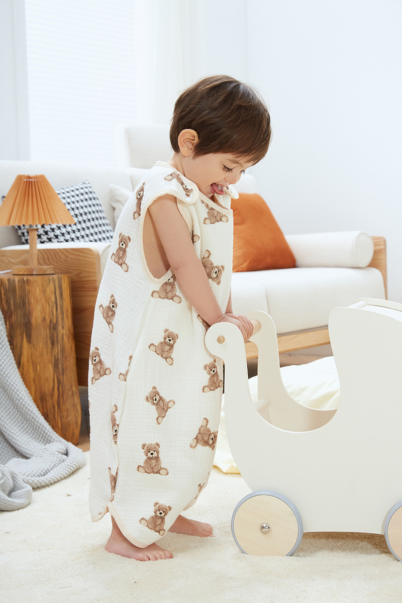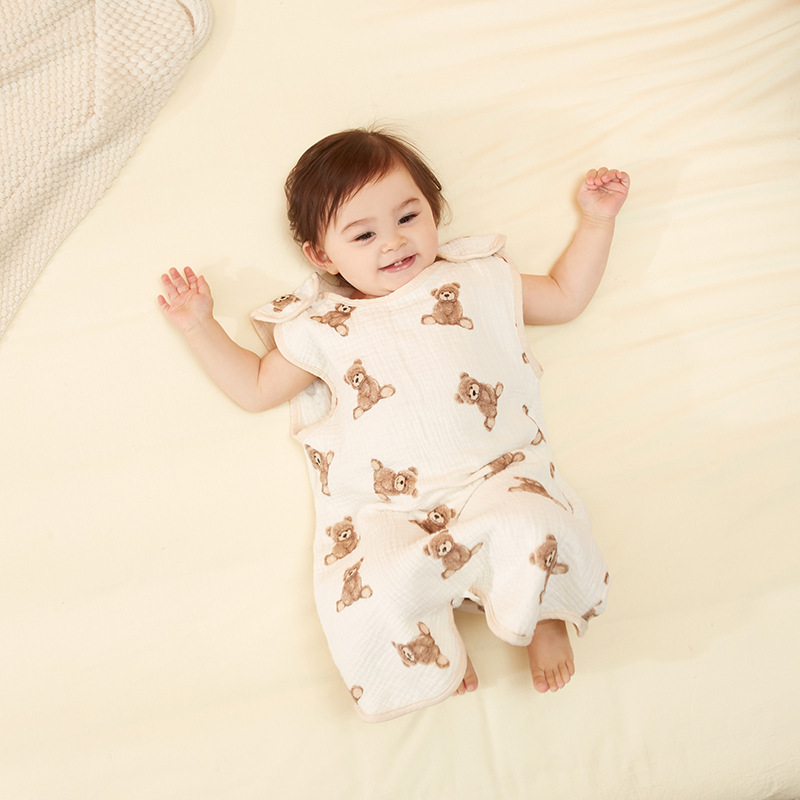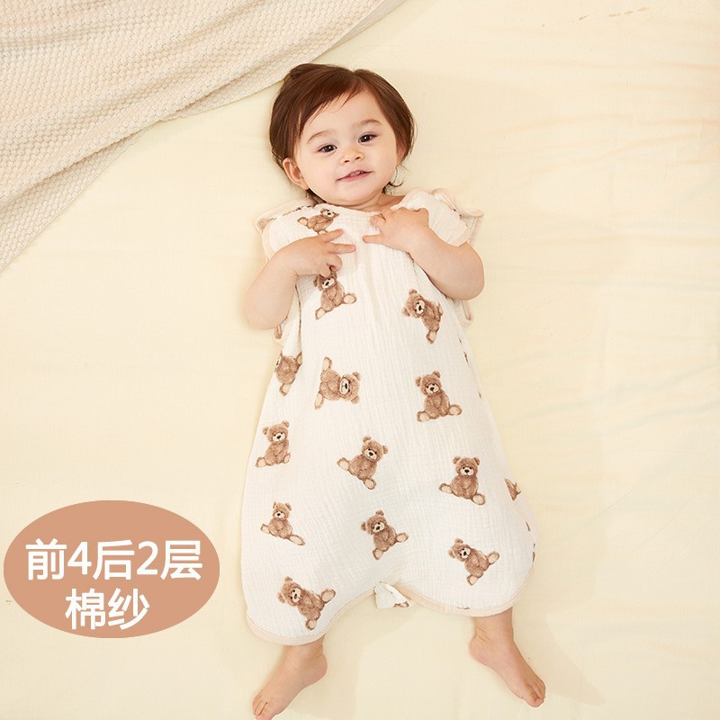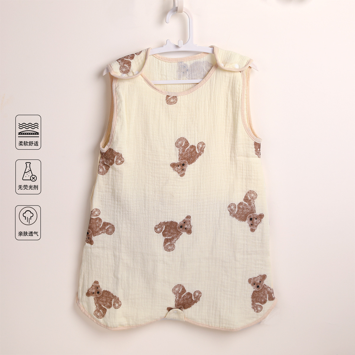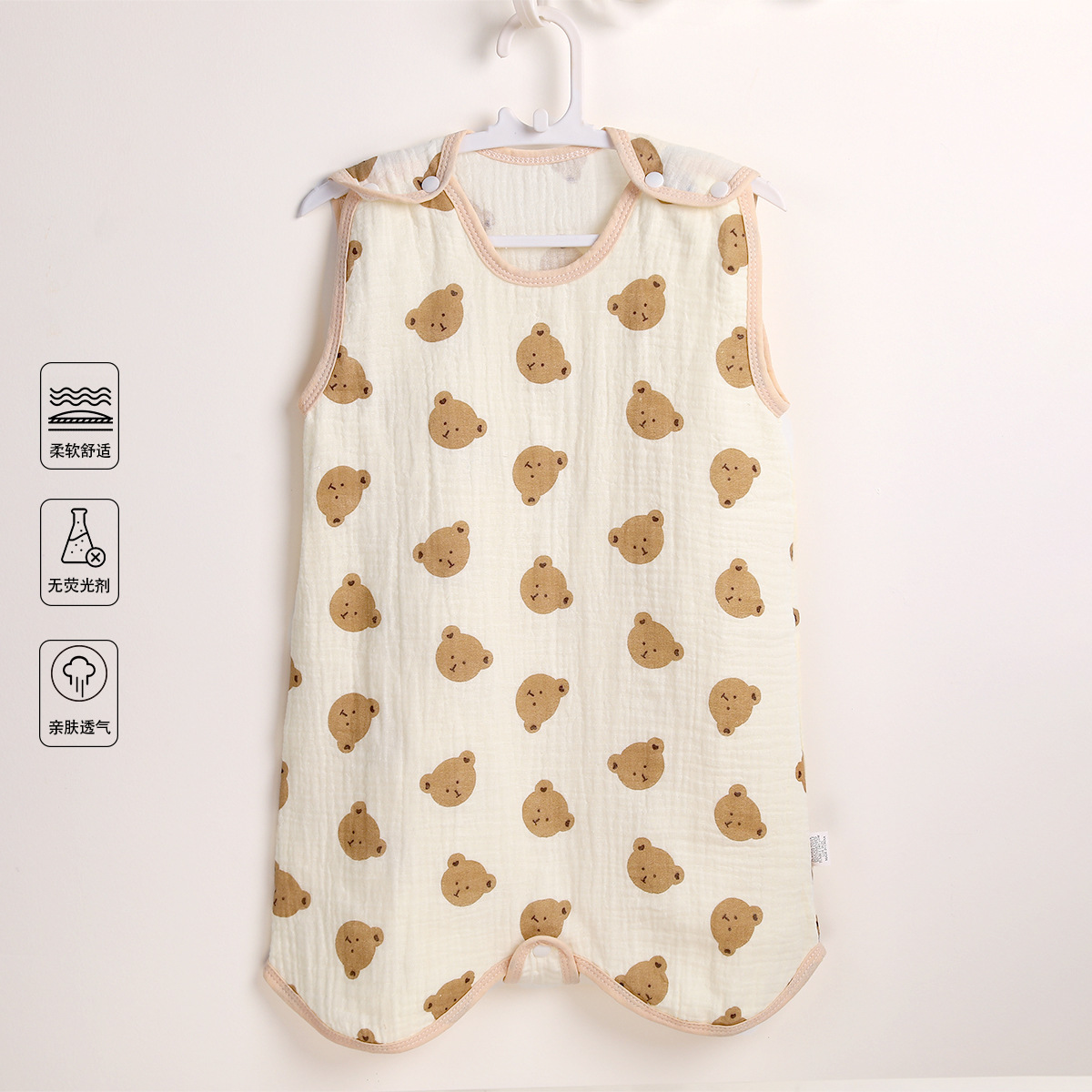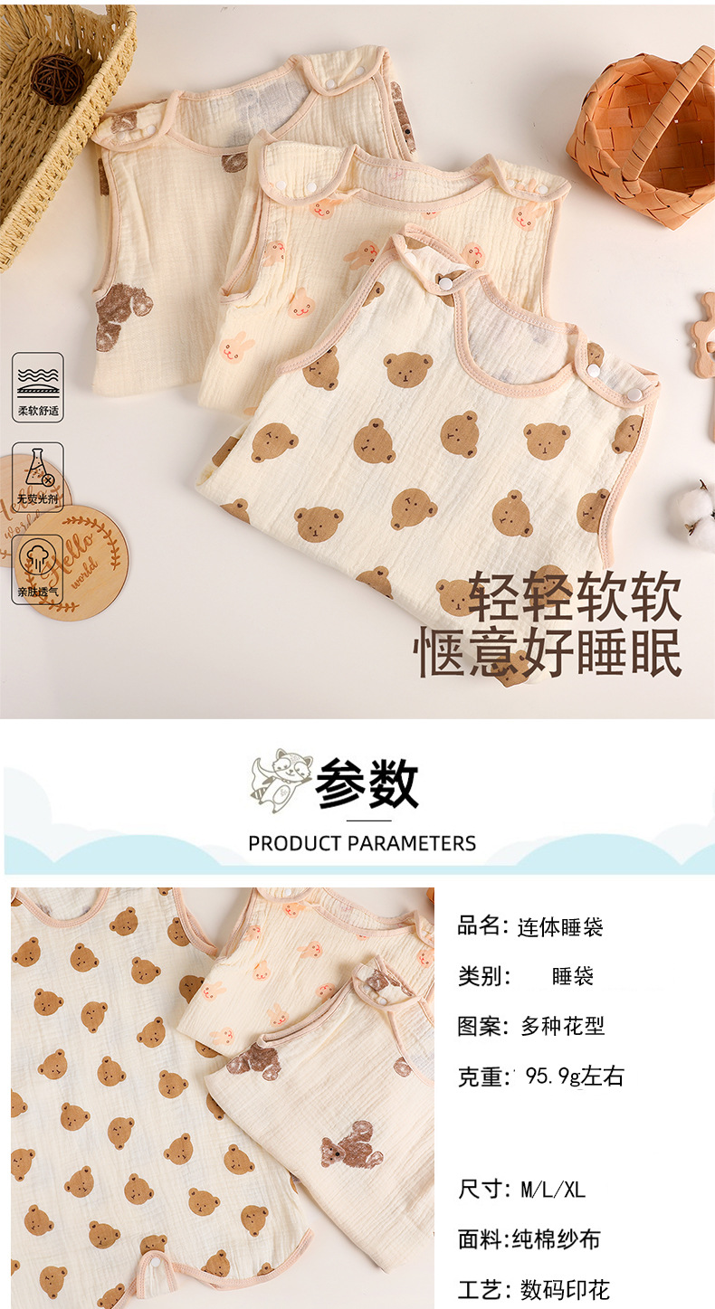 名称:宝宝爬纯棉纱布睡袋无袖背心新生儿童防踢被婴儿夏季薄款