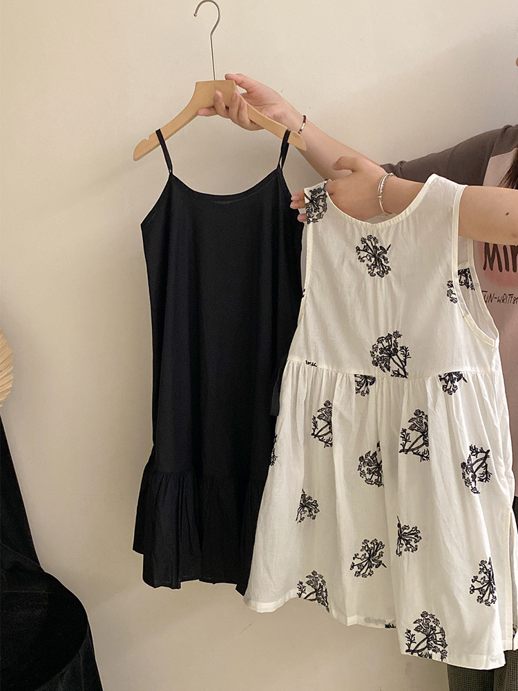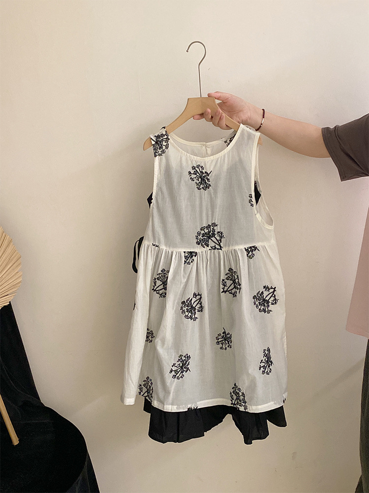 한국 스타일 소녀의 여름 새로운 올 매치 플라워 원피스 2025 올 매치 솔리드 컬러 슬링 캐주얼 롱 원피스 투피스 세트