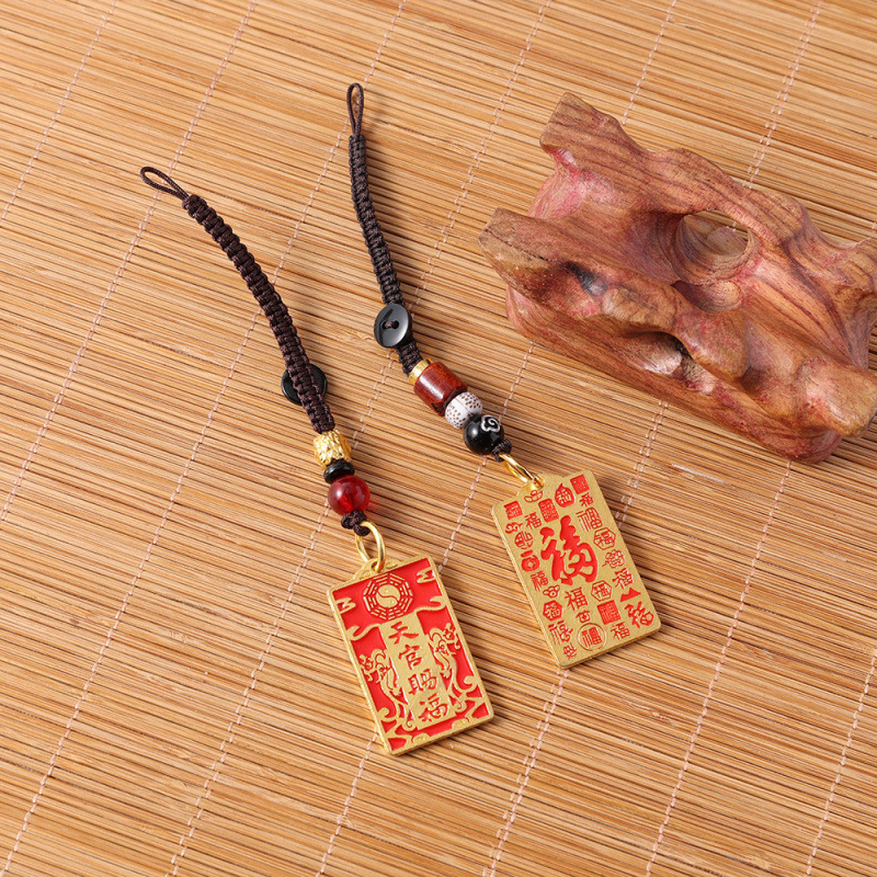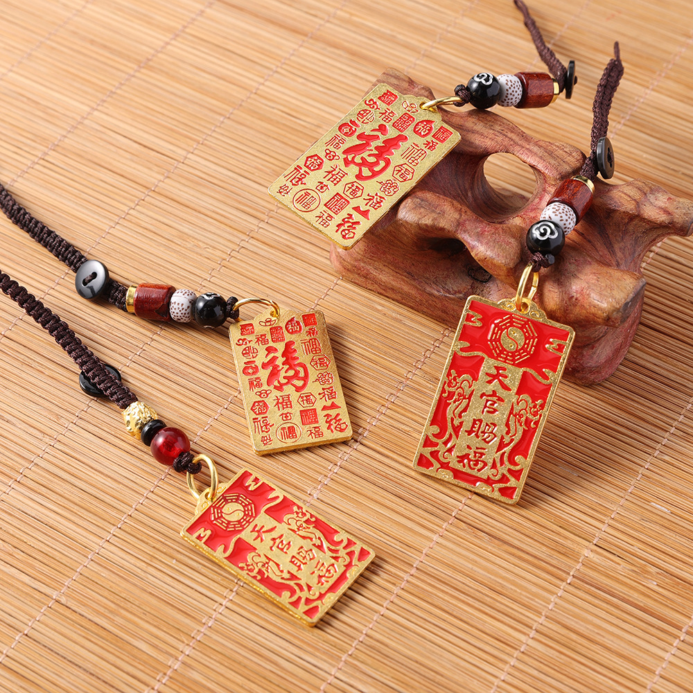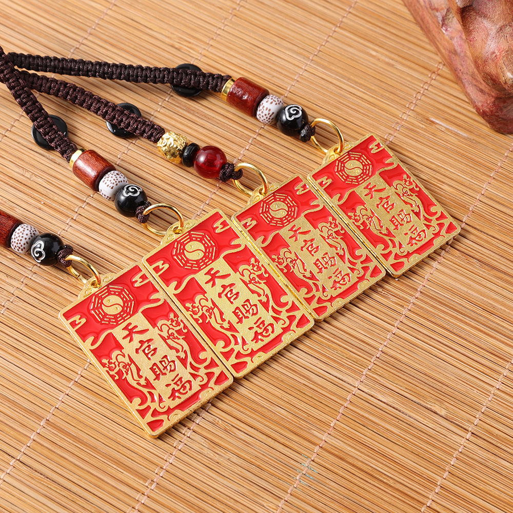 새로운 합금 천관 축복 안전 카드 부와 팔괘 펜던트 부를 끌어들이는 Pixiu 로프 키 체인 펜던트 직접 판매
