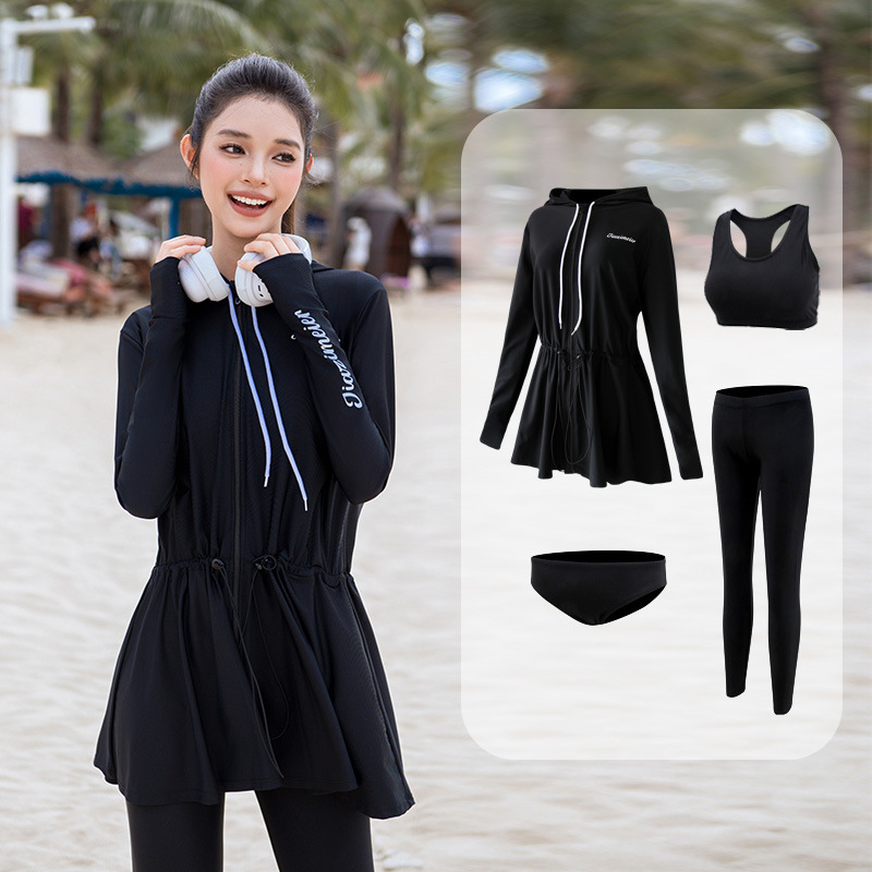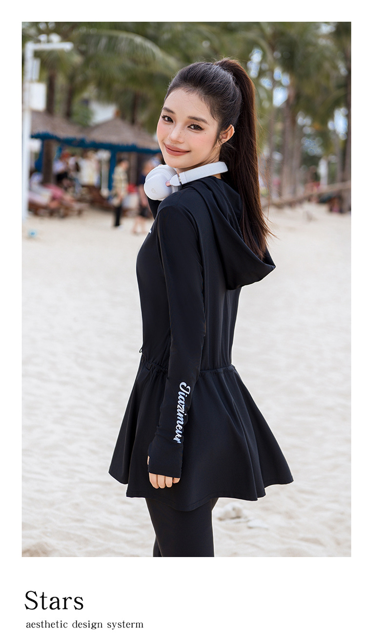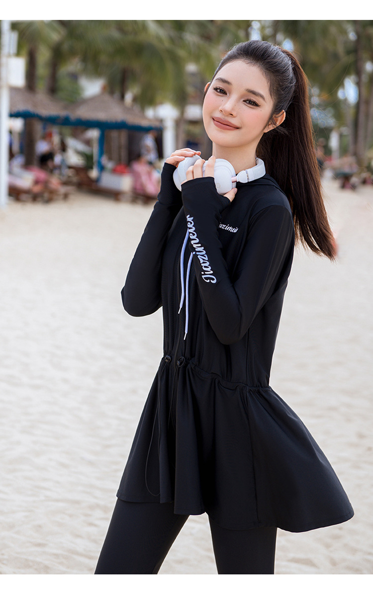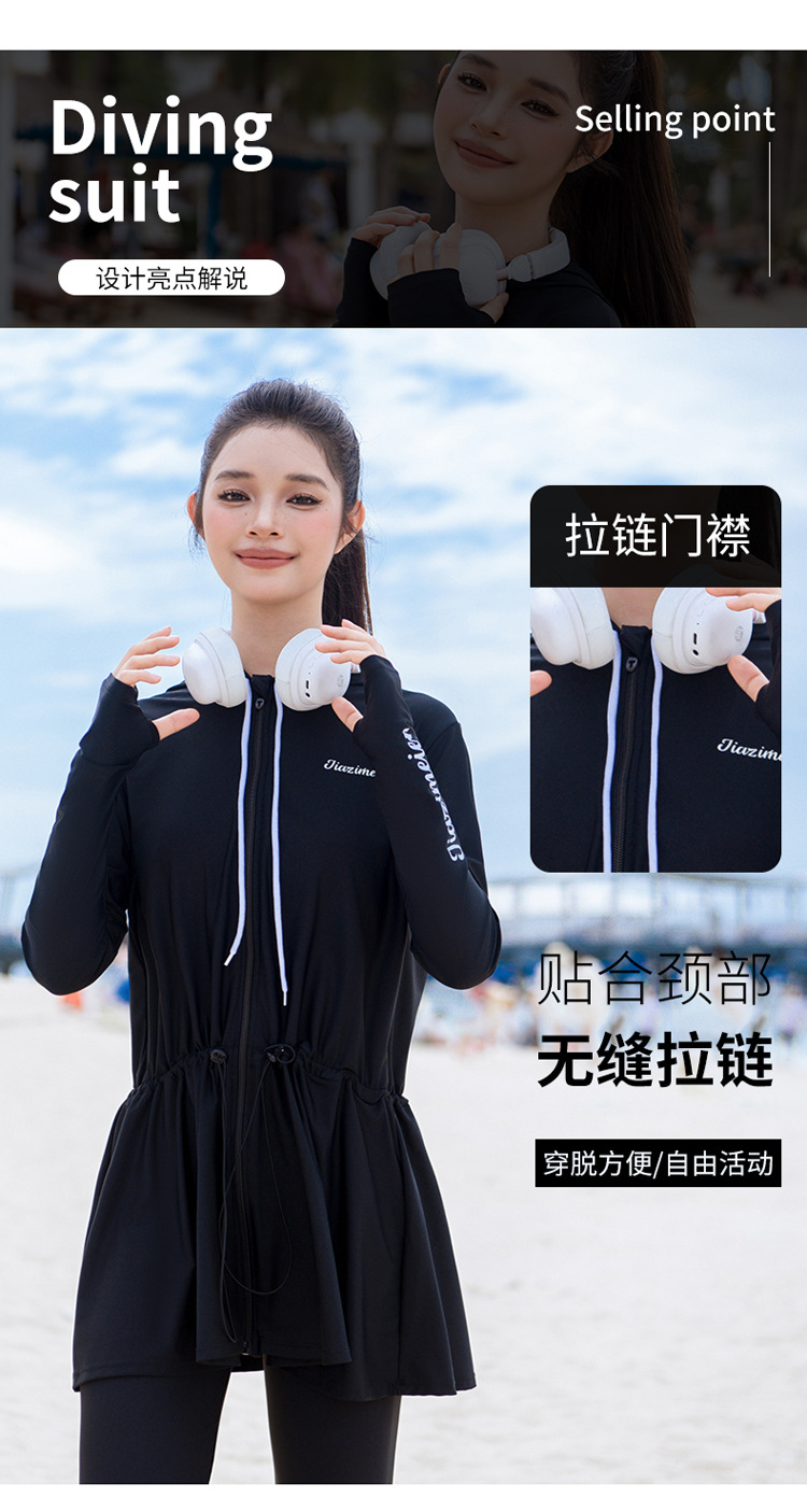 다이빙 슈트 여성용 긴팔 후드 수영복 스플릿 바지 자외선 차단 슈트 2025 새로운 슬리밍 전문 해변 서핑스토어 가기