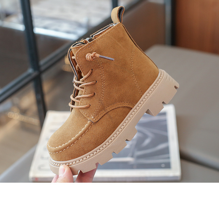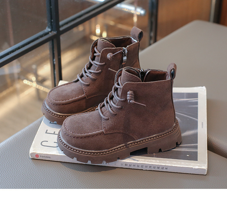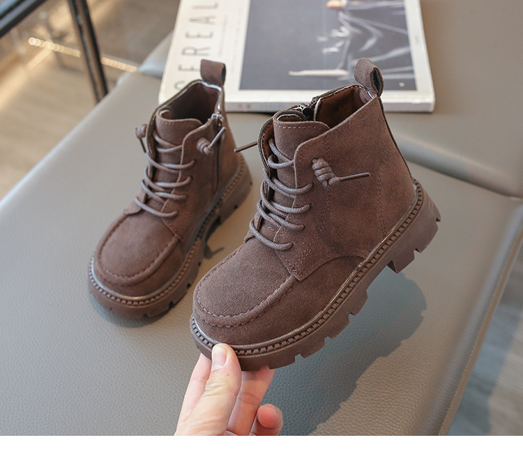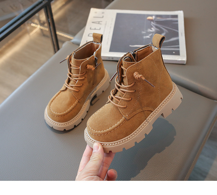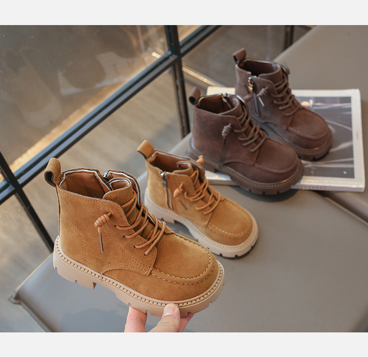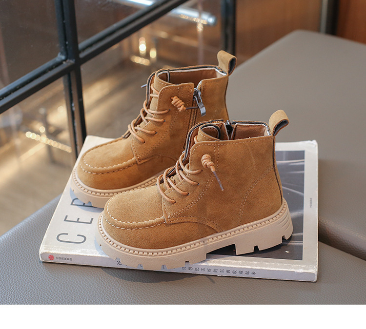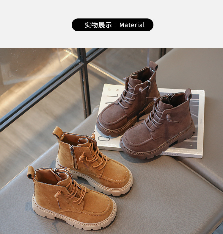 2025 봄과 가을 소년과 소녀 새로운 어린이 부드러운 가죽 짧은 부츠 부츠 유행 싱글 부츠 중형 및 대형 어린이 부드러운 밑창 마틴 부츠