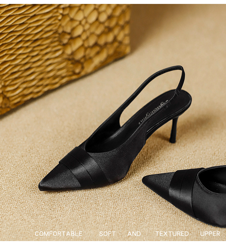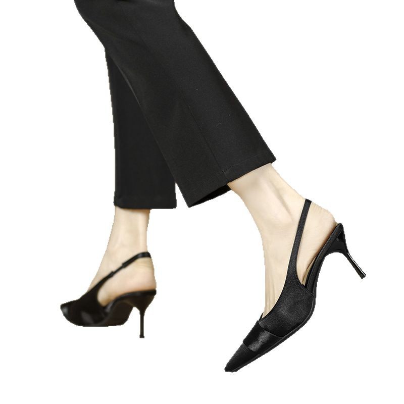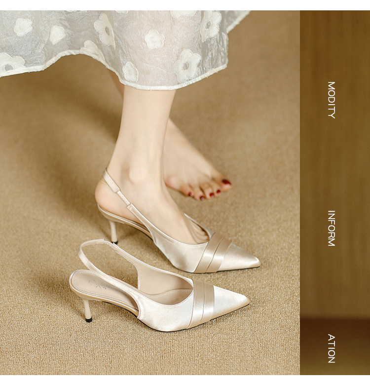 여성용 새틴 발가락 샌들 2025 봄 신상 하이힐 스틸레토 포인티드 프렌치 스타일 누드 컬러 다용도 신발스토어 가기