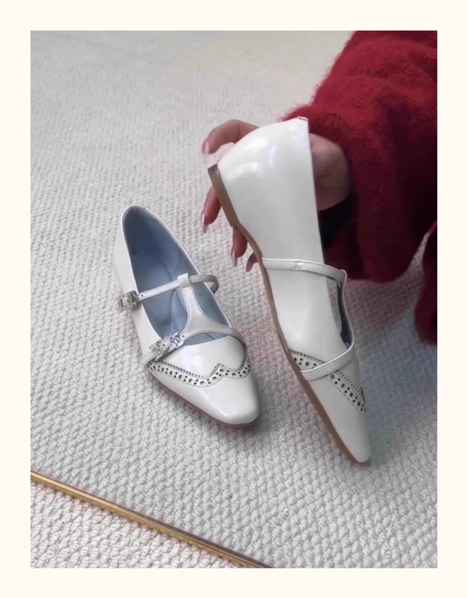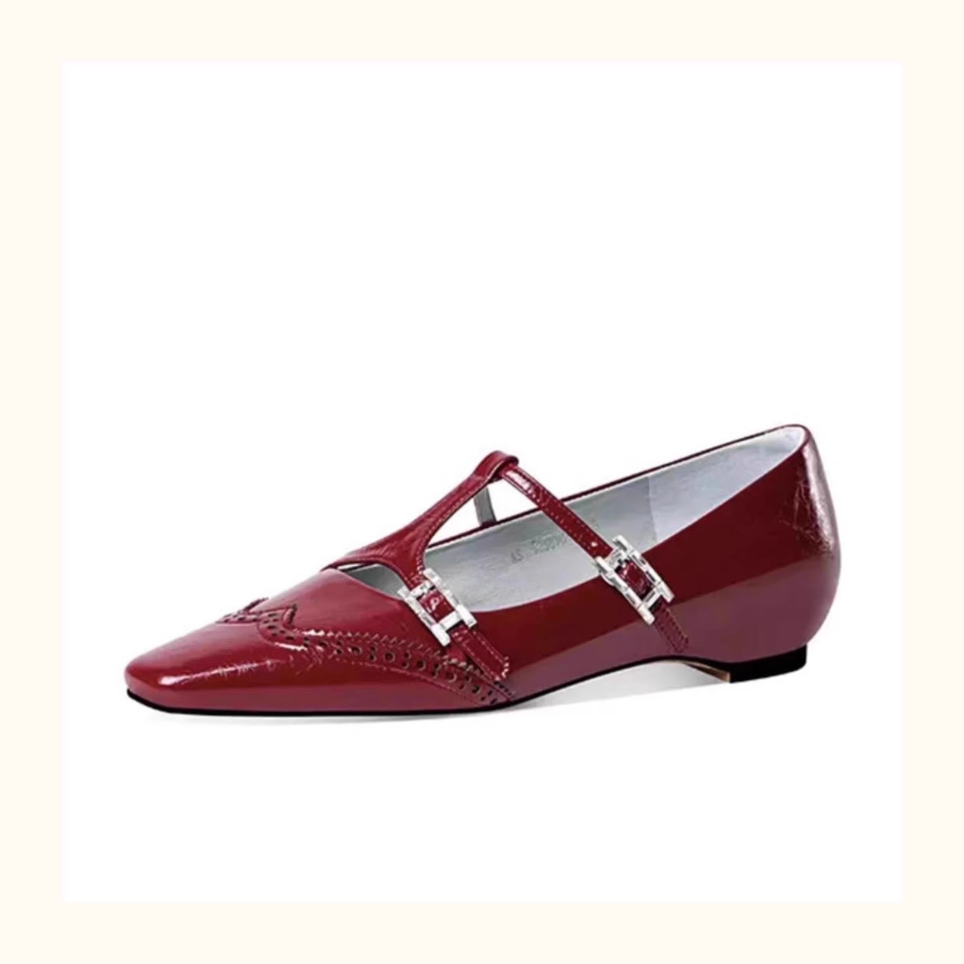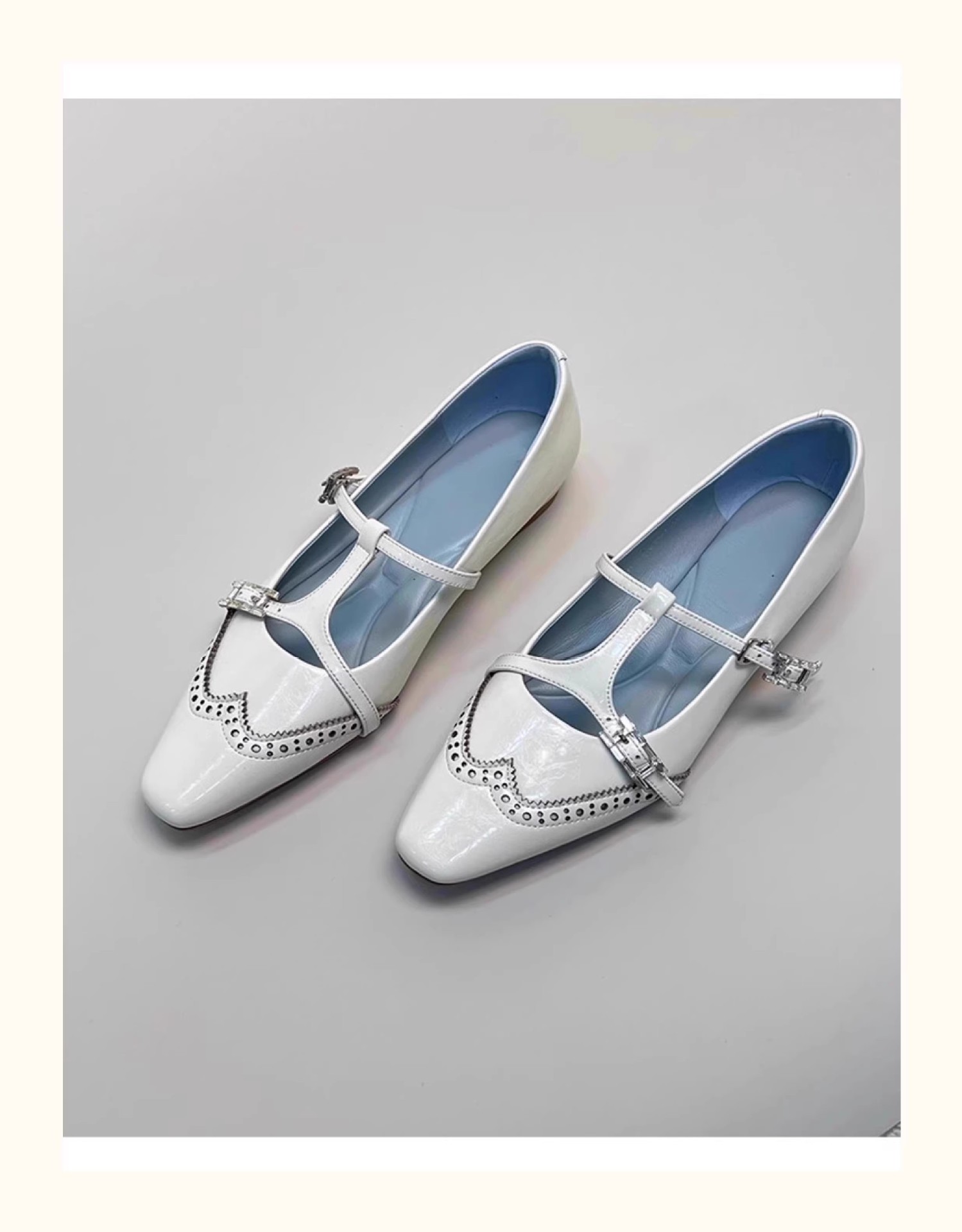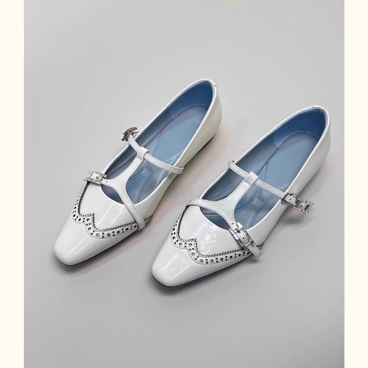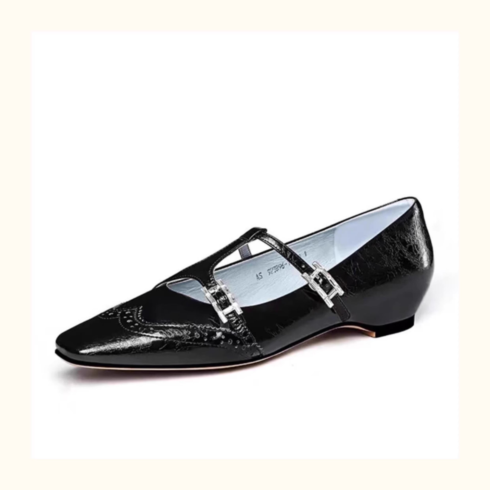 재고 있음, 여성용 조각 사각 발가락 메리 제인 슈즈, 키가 큰 싱글 슈즈, 버클 스트랩 작은 가죽 신발스토어 가기