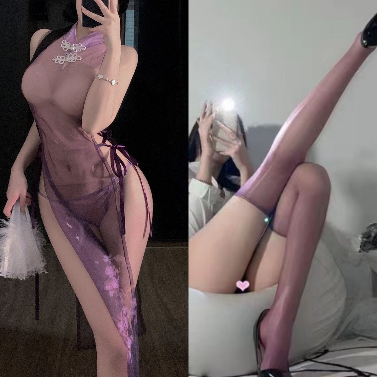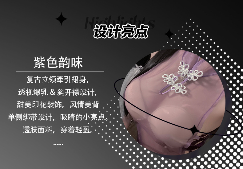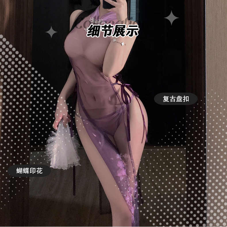 시즌 종료 새로운 중국 스타일 메쉬 치파오 시스루 섹시 란제리 레트로 슬림 슬릿 스트랩 프린트 치파오 여성 7069스토어 가기